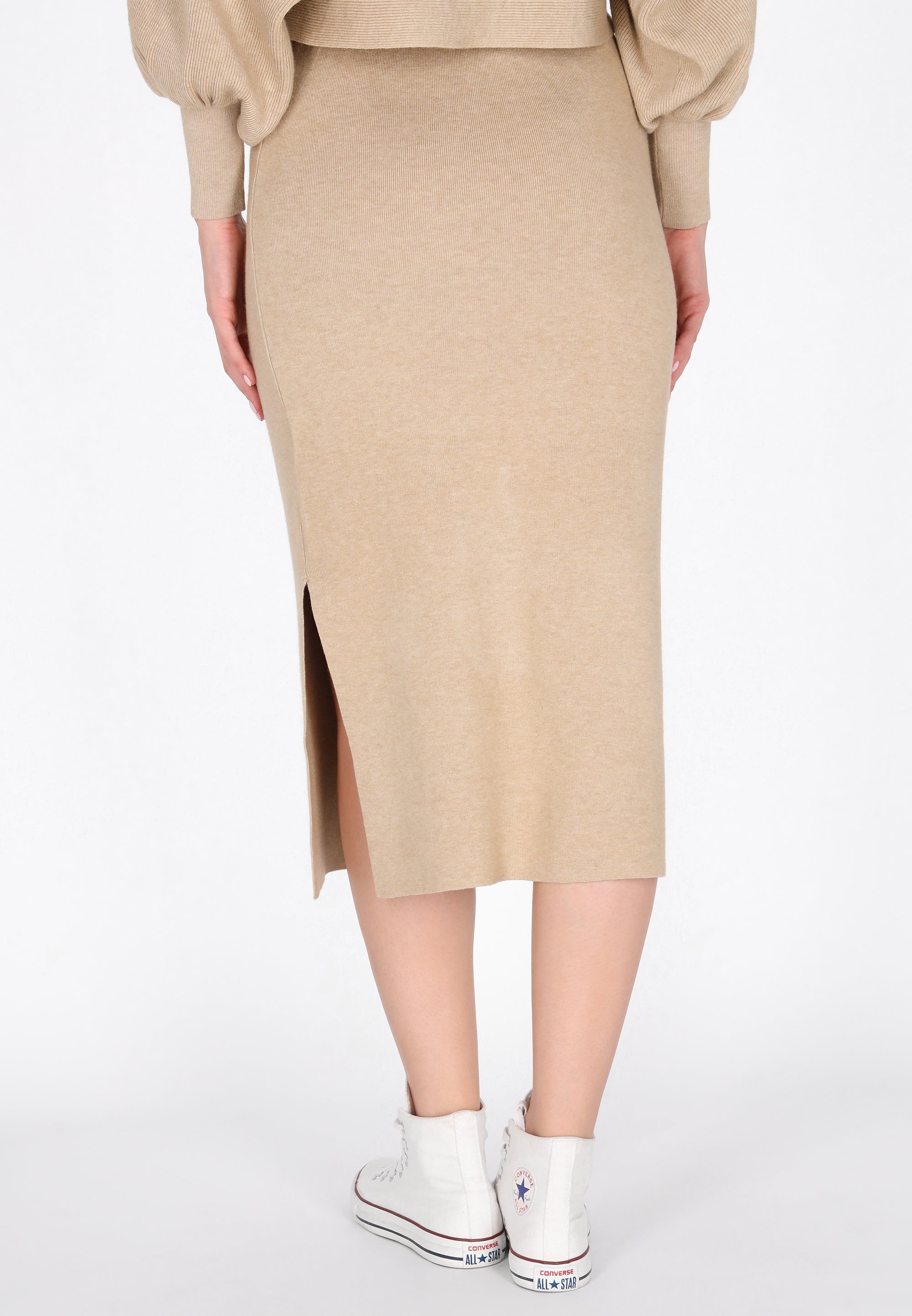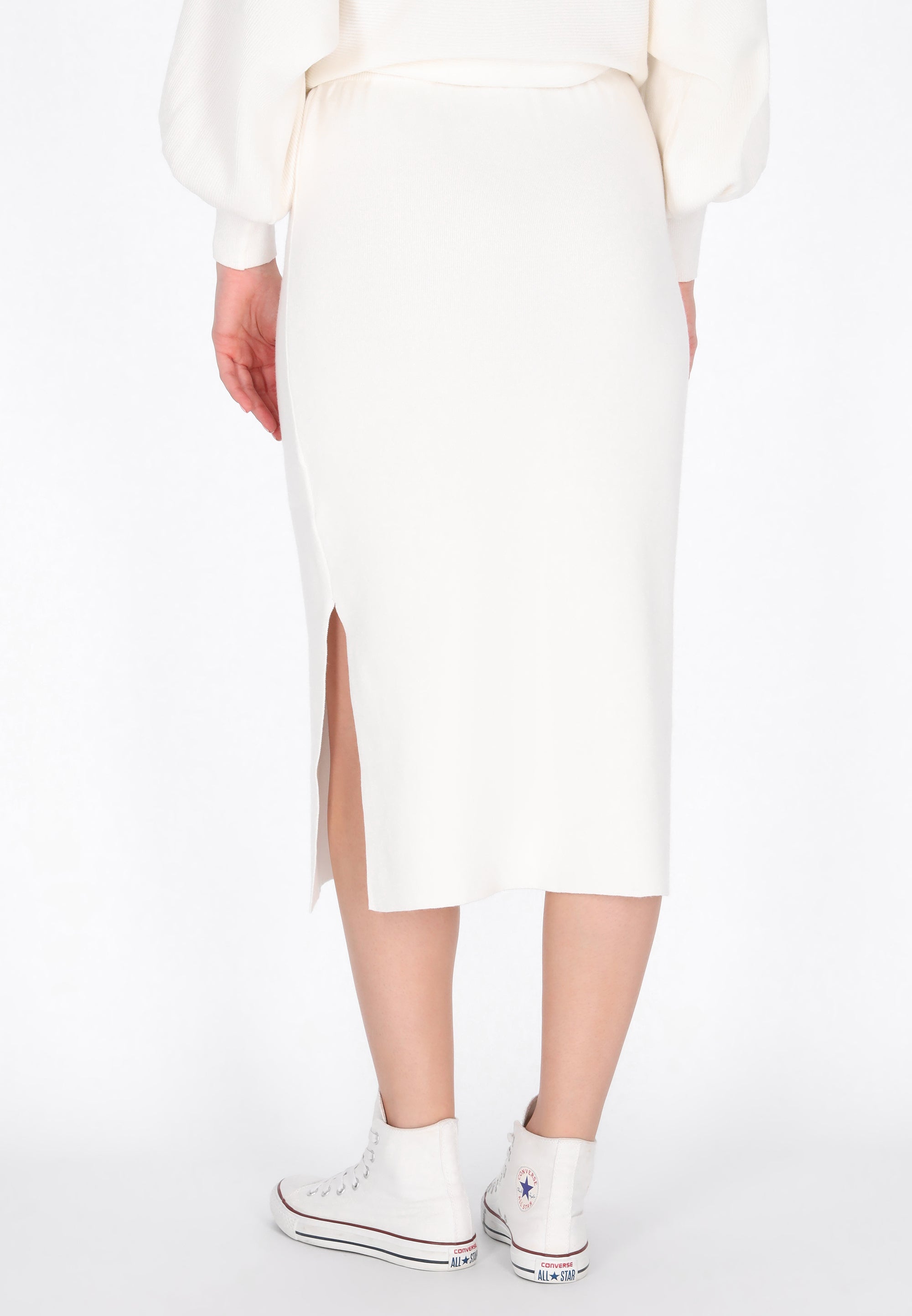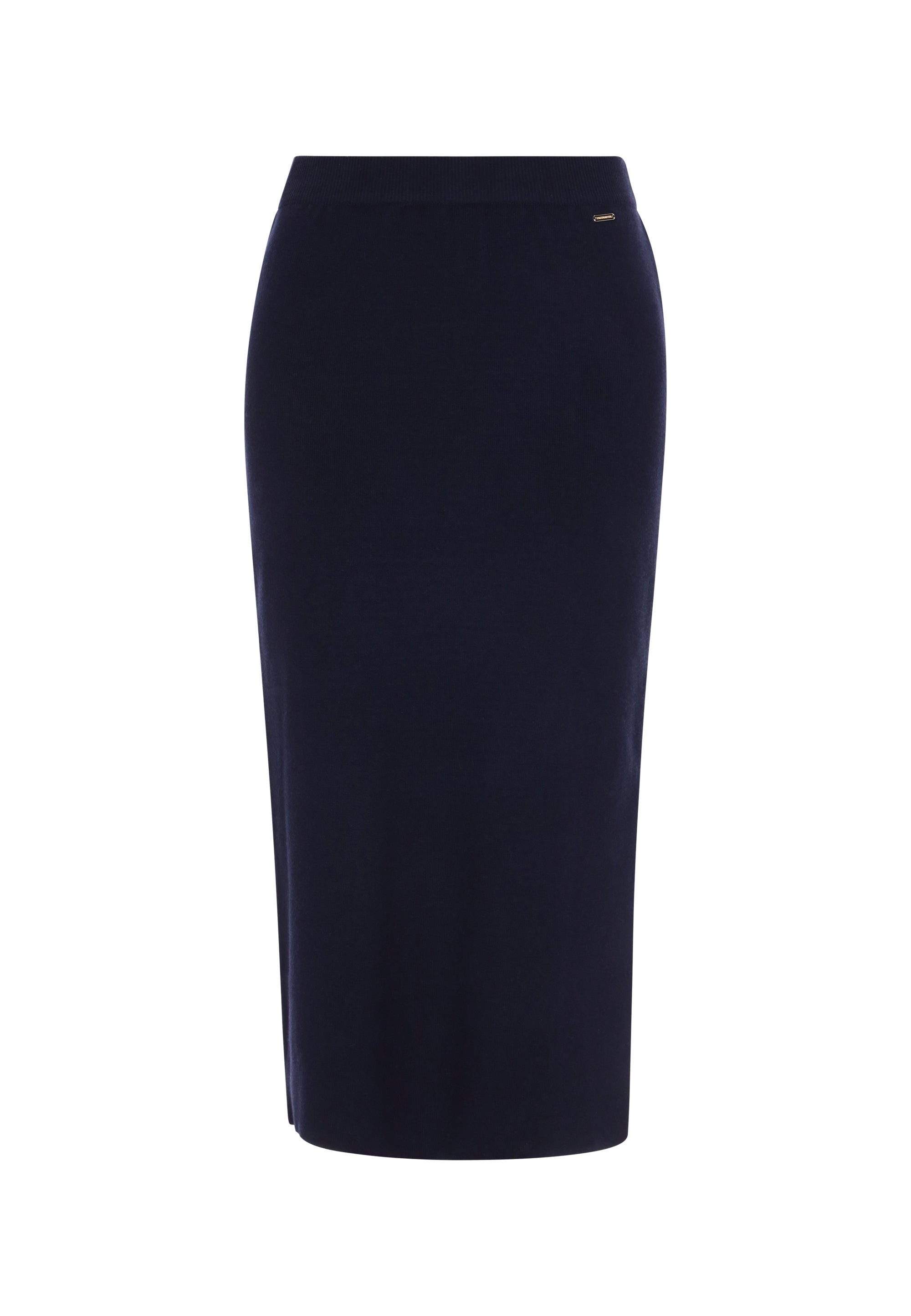 Ein klassischer Midirock aus der Maritime Kollektion, perfekt für den Alltag. Hergestellt aus elastischem, geripptem Jersey, der hervorragenden Sitz und Komfort bietet. Das glatte, minimalistische Muster macht ihn zu einem zeitlosen Garderoben-Basics – eine großartige Wahl für lässige Stylings. Die universelle Midilänge und der bequeme Schnitt machen ihn zu einem idealen Vorschlag für jede Jahreszeit.