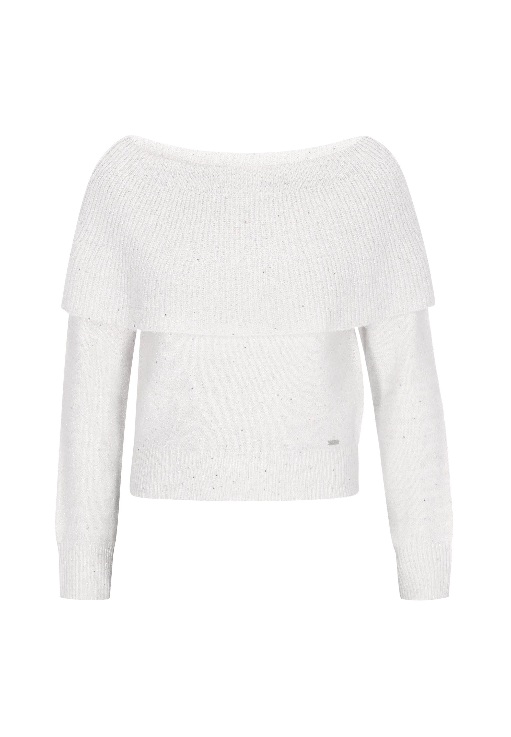 Dieser sinnliche und elegante Pullover aus der DreiMaster Klassik Kollektion ist eine Mischung aus Klasse und Weiblichkeit. Hergestellt aus weichem, gestricktem Stoff, beeindruckt er mit seiner regulären Passform, die die Silhouette dezent betont und gleichzeitig vollständigen Komfort gewährleistet. Das schulterfreie Design verleiht einen romantischen und modischen Akzent. Dezente Pailletten und schimmernder Faden erzeugen ein zartes, schimmerndes Muster, das ins Auge fällt und dem Stück eine einzigartige Eleganz verleiht. Dieser stilvolle und bequeme Pullover ist perfekt für besondere Anlässe.