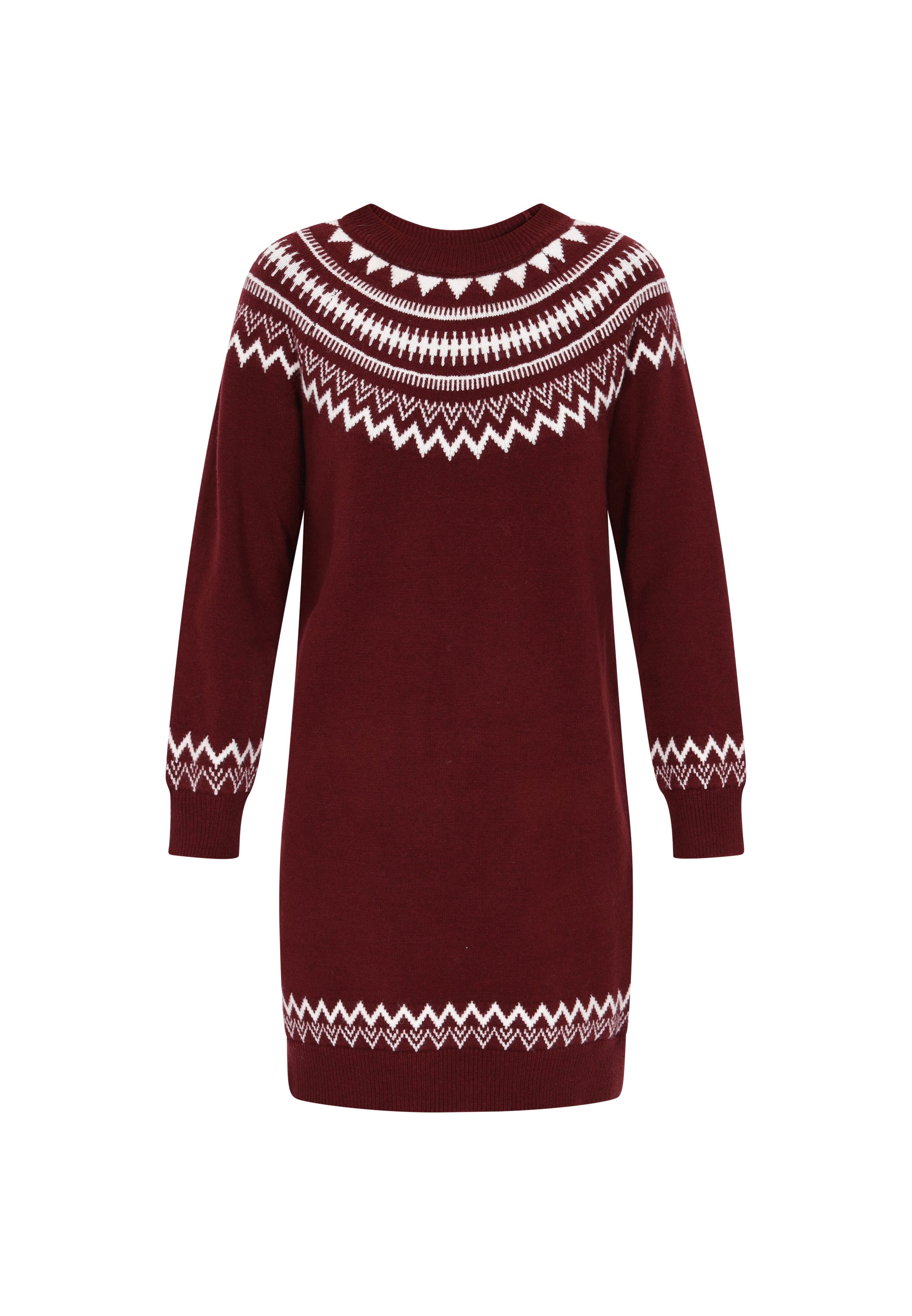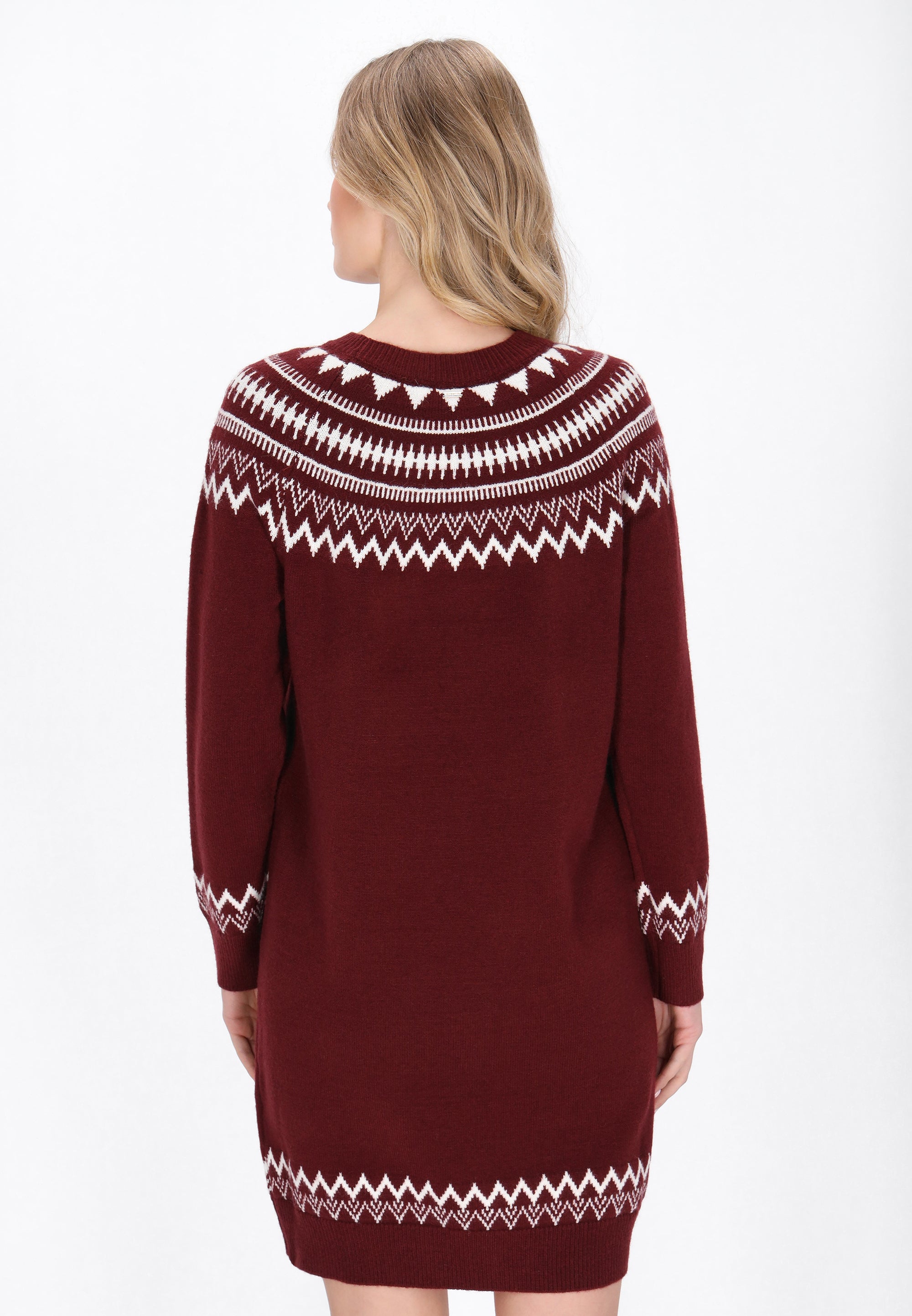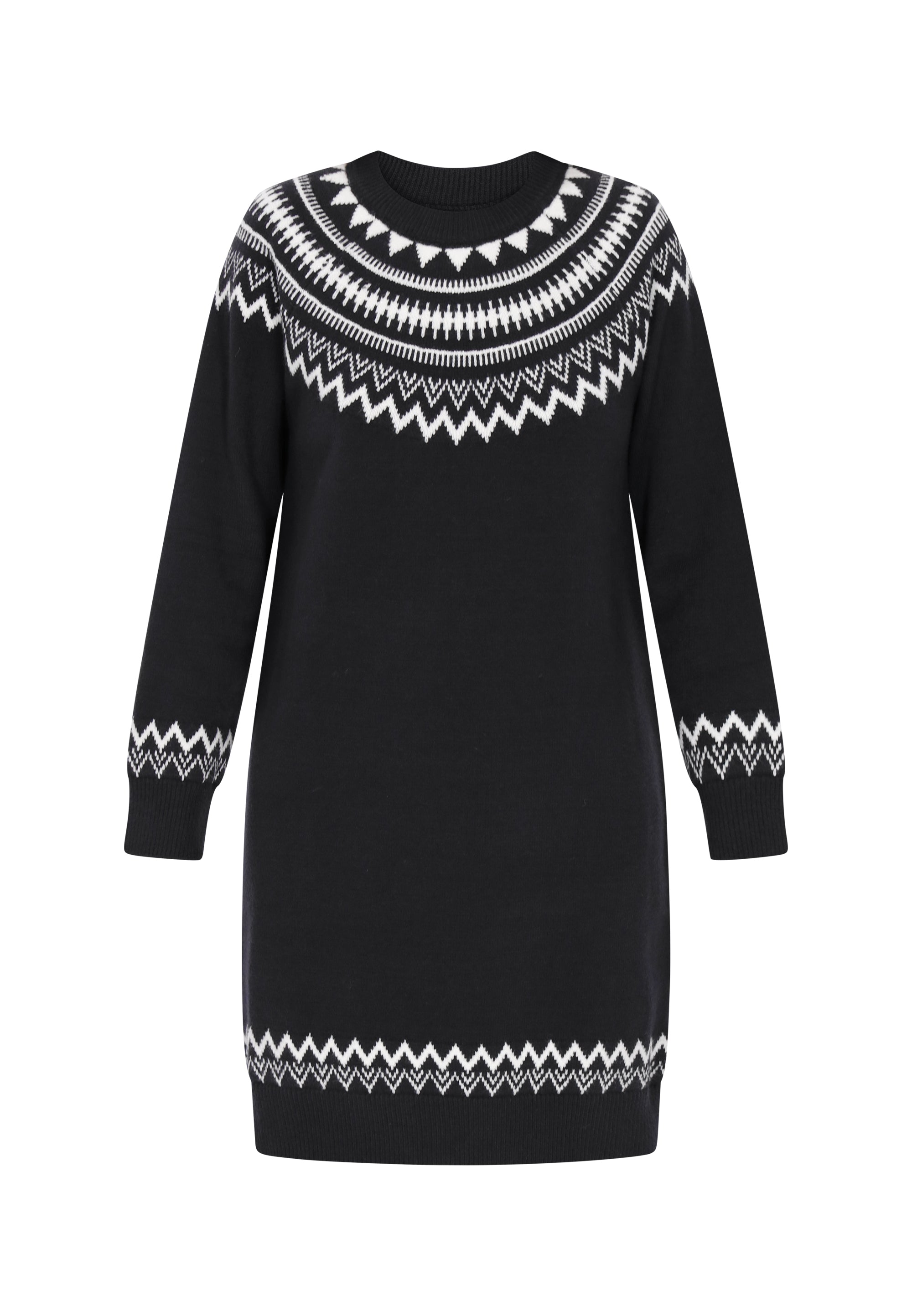 Odkryj sukienkę z naszej Kolekcji Morskiej, która emanuje swobodną elegancją. Ta sukienka o regularnym kroju i długości mini posiada okrągły dekolt oraz długie rękawy, tworząc ponadczasowy wygląd. Z dzianinową narzutką w norweski wzór, łączy tradycyjne dzianiny z nowoczesnym stylem. Wygodna i idealna na chłodniejsze dni, ta sukienka jest wszechstronna i nadaje się na różne okazje.