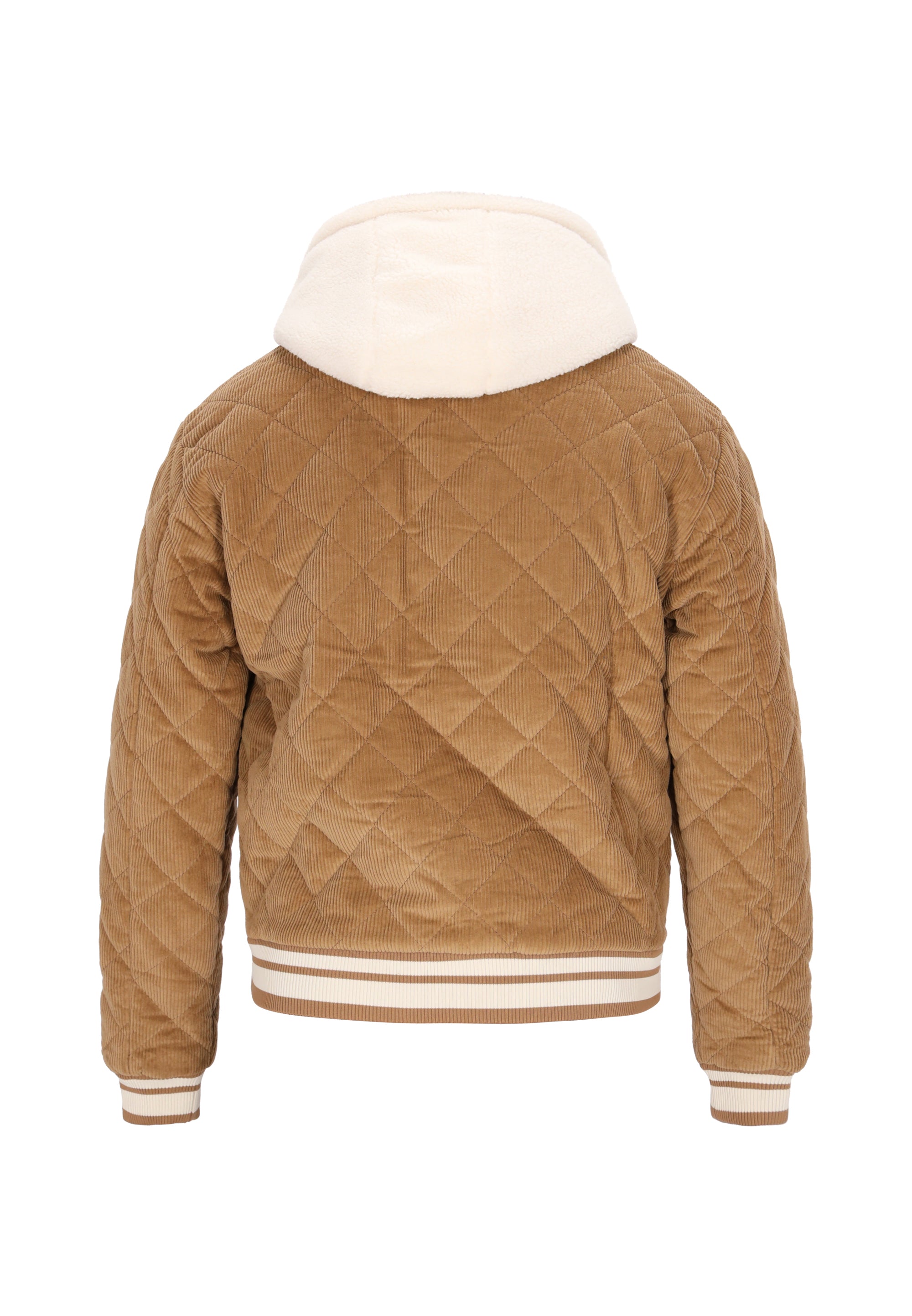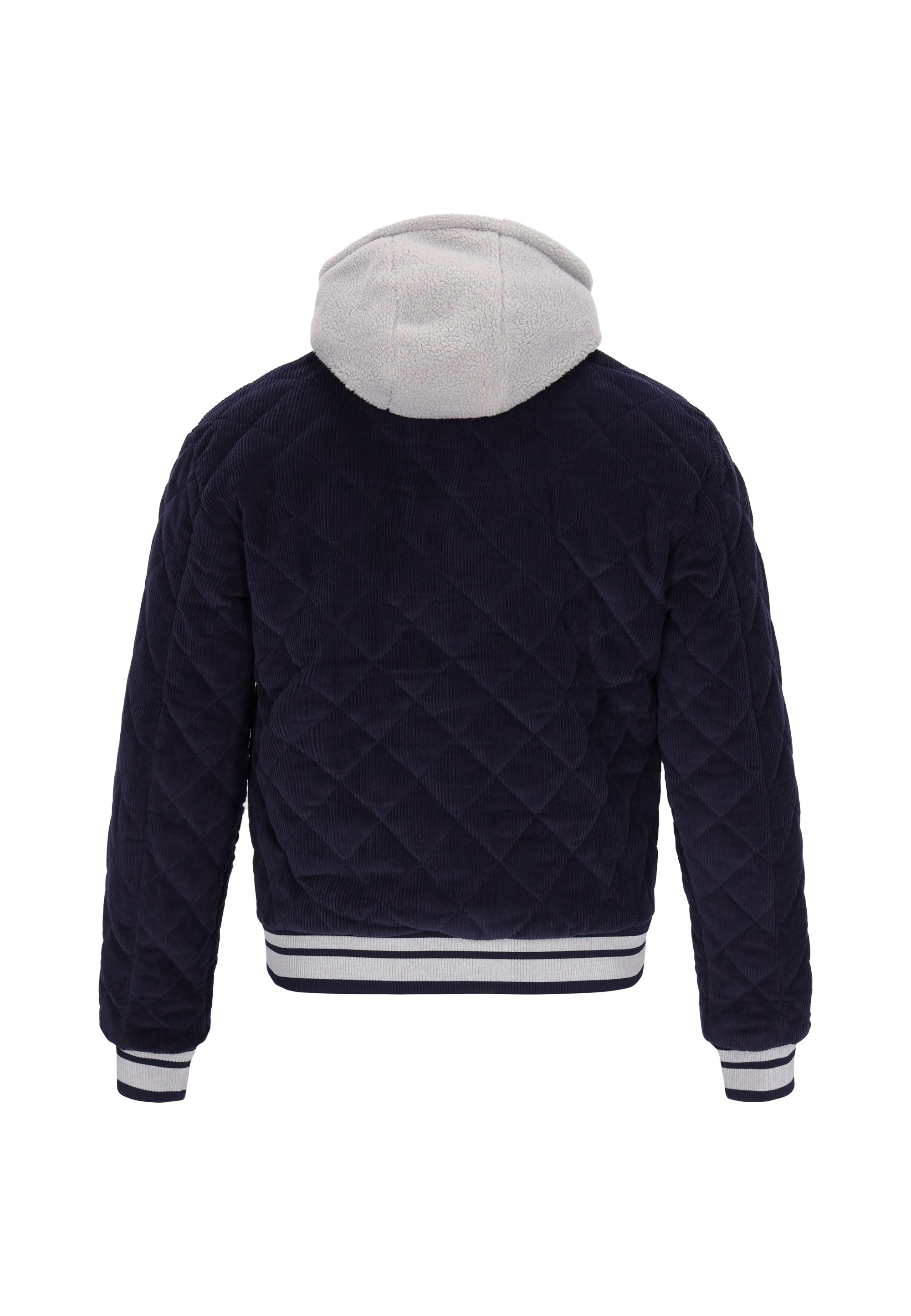 The DreiMaster Vintage Collection Jacket is a stylish college jacket with a modern twist. Crafted from soft corduroy and quilted for added comfort and warmth, the regular fit ensures freedom of movement, while the ribbed cuffs emphasize the sporty character of the jacket. Featuring a practical drawstring hood, snap closure, and functional pockets, this jacket is perfect for everyday, casual styling. It's a combination of comfort, timeless style, and quality craftsmanship that distinguishes the DreiMaster Vintage brand.