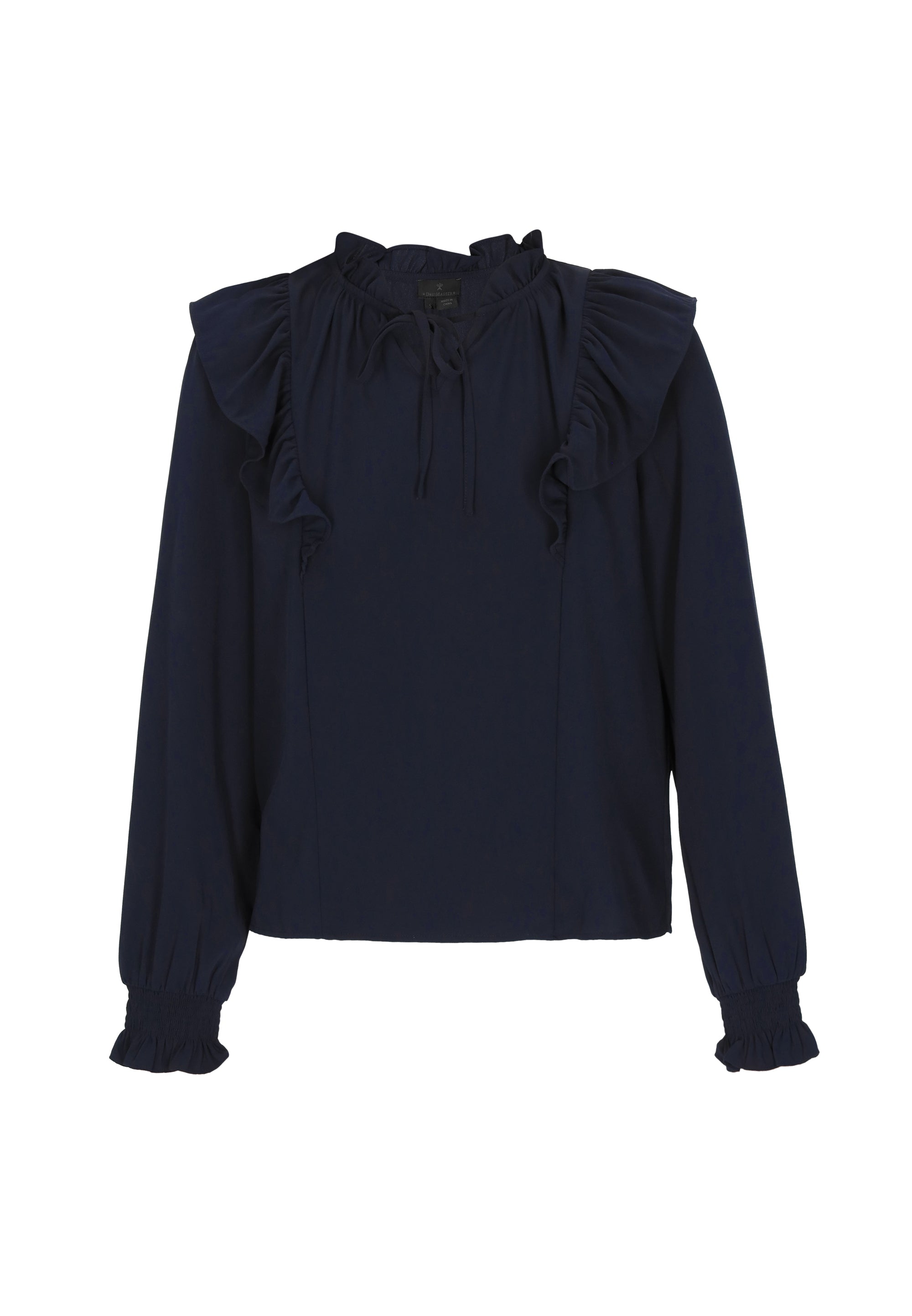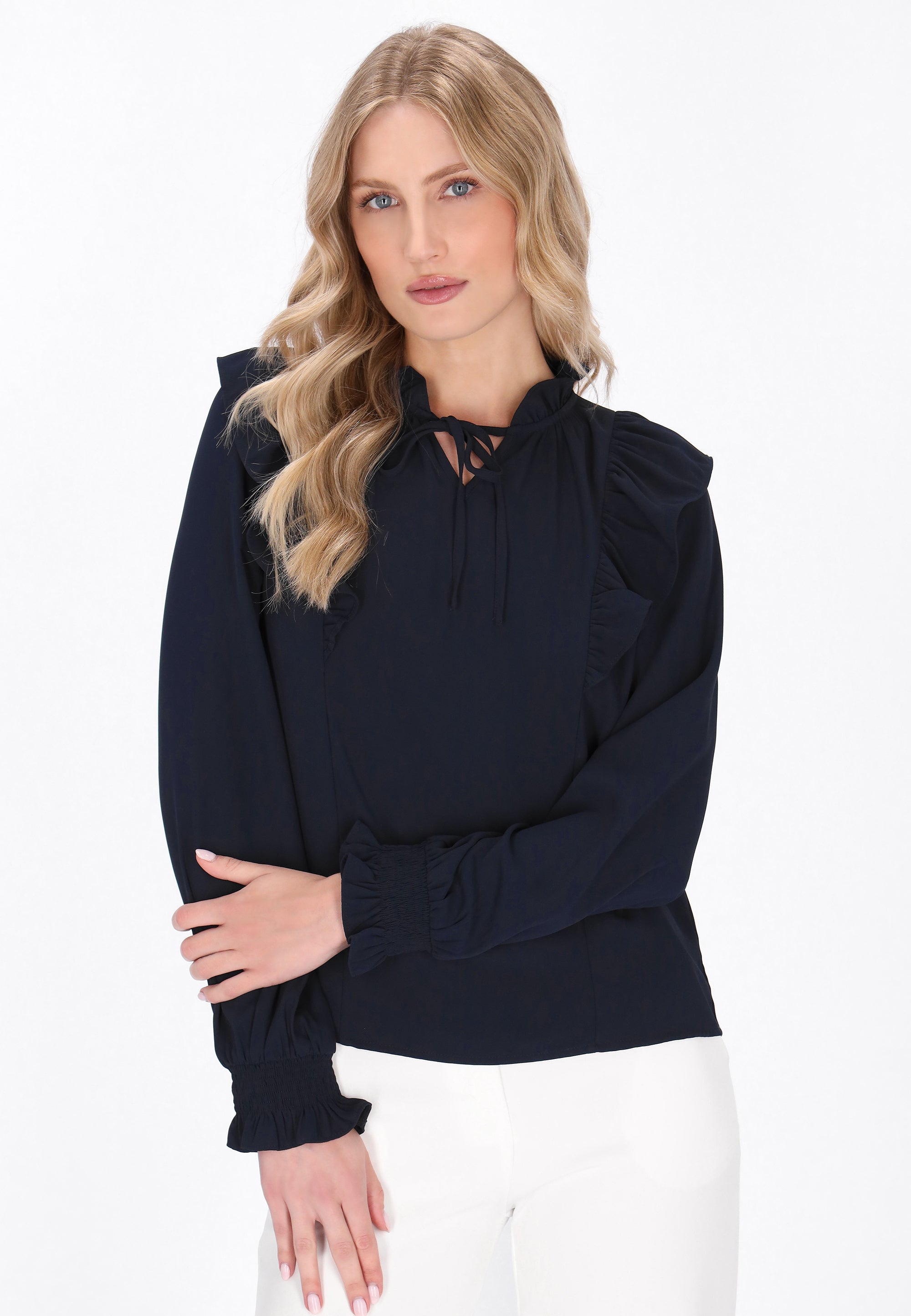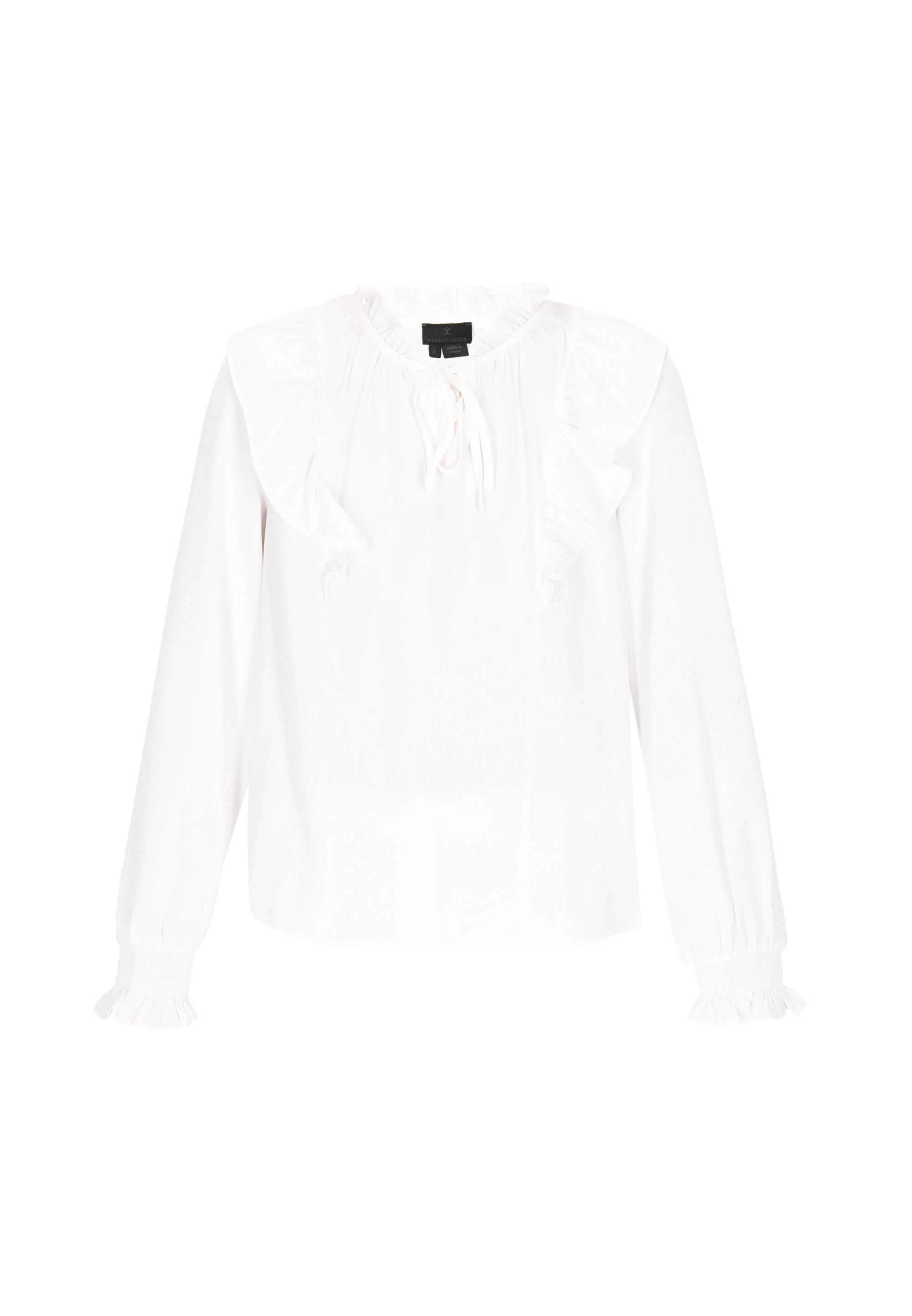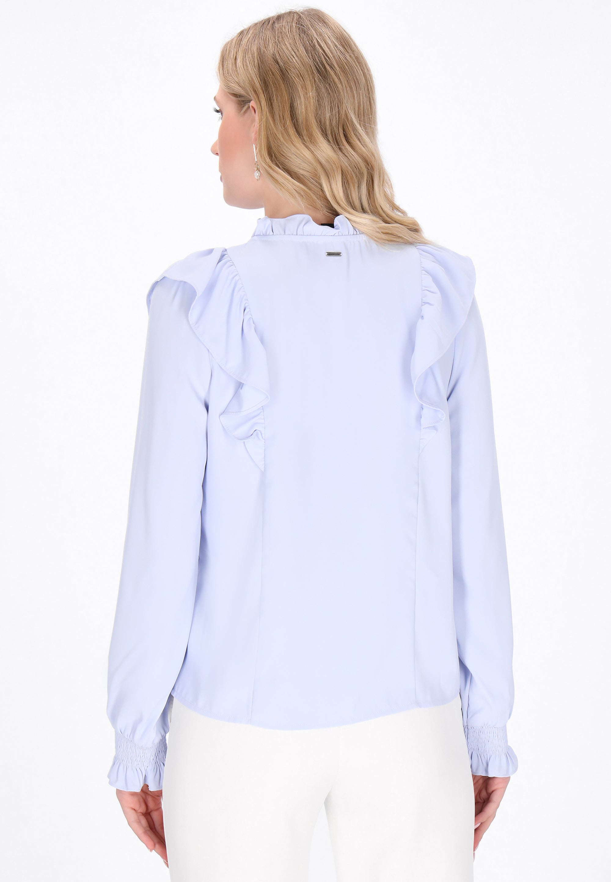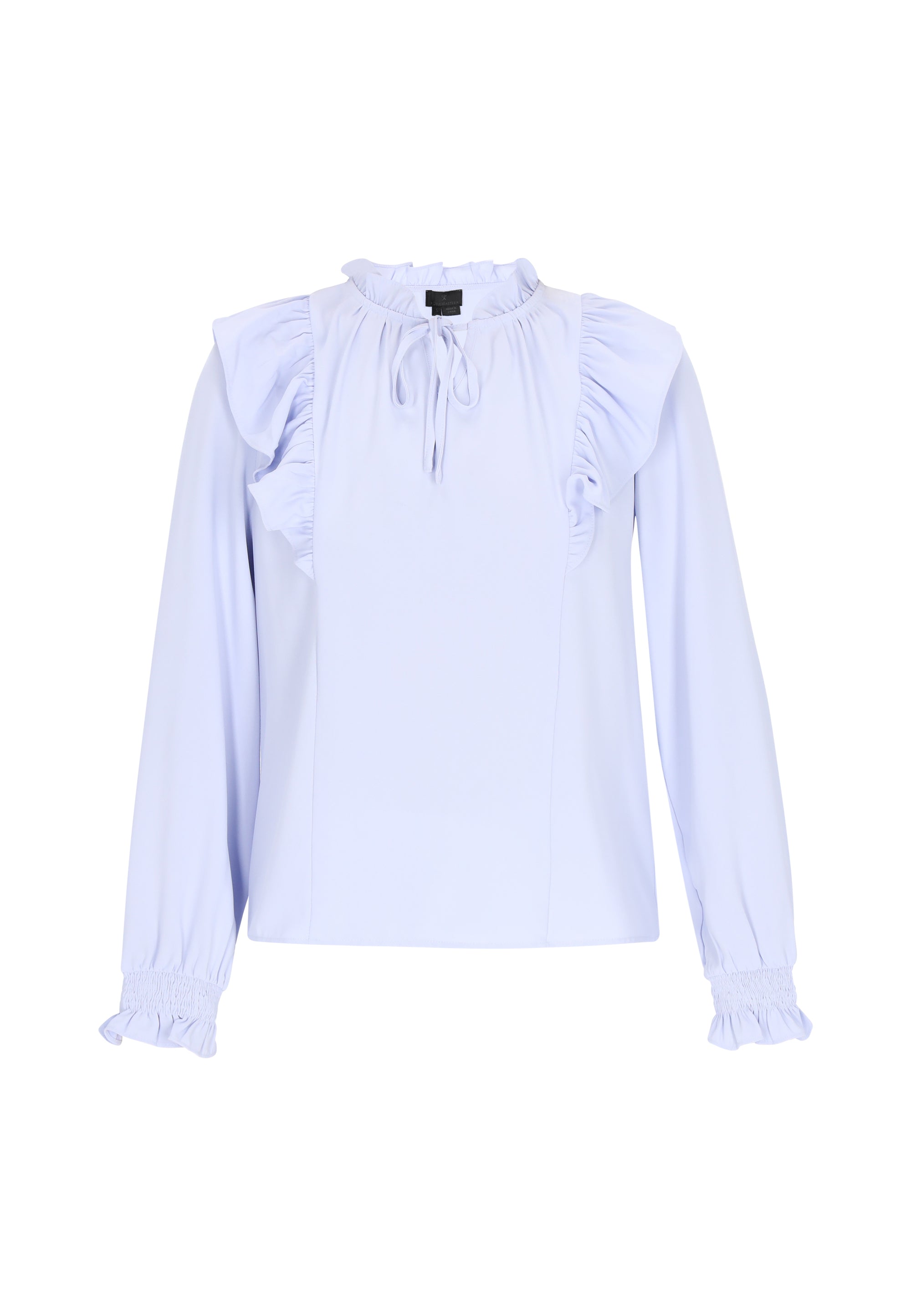 A timeless addition to your closet, this blouse features a regular fit and keyhole neckline with a ruffled collar for a touch of elegance. The long sleeves are decorated with delicate creases on the elastic cuffs, adding a feminine touch. Perfect for everyday wear. This woven blouse exudes classic charm with its smooth pattern and simple form. It is part of the Classic Look Collection.