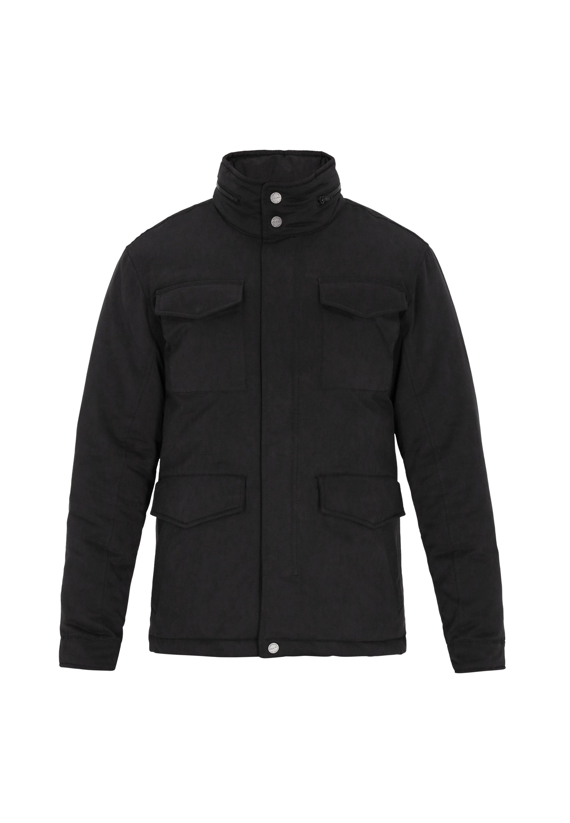 Refine your outerwear with this men's jacket from the DreiMaster Klassik Collection. Designed in a regular fit for a balance of comfort and style, it features a stand collar and long sleeves for a timeless look. The zip-up front with snap buttons ensures secure closure, while flap pockets add both functionality and character. Made from durable woven fabric in a plain pattern, it blends casual appeal with classic design. Comfortable and versatile, this jacket is the perfect addition to a modern wardrobe.