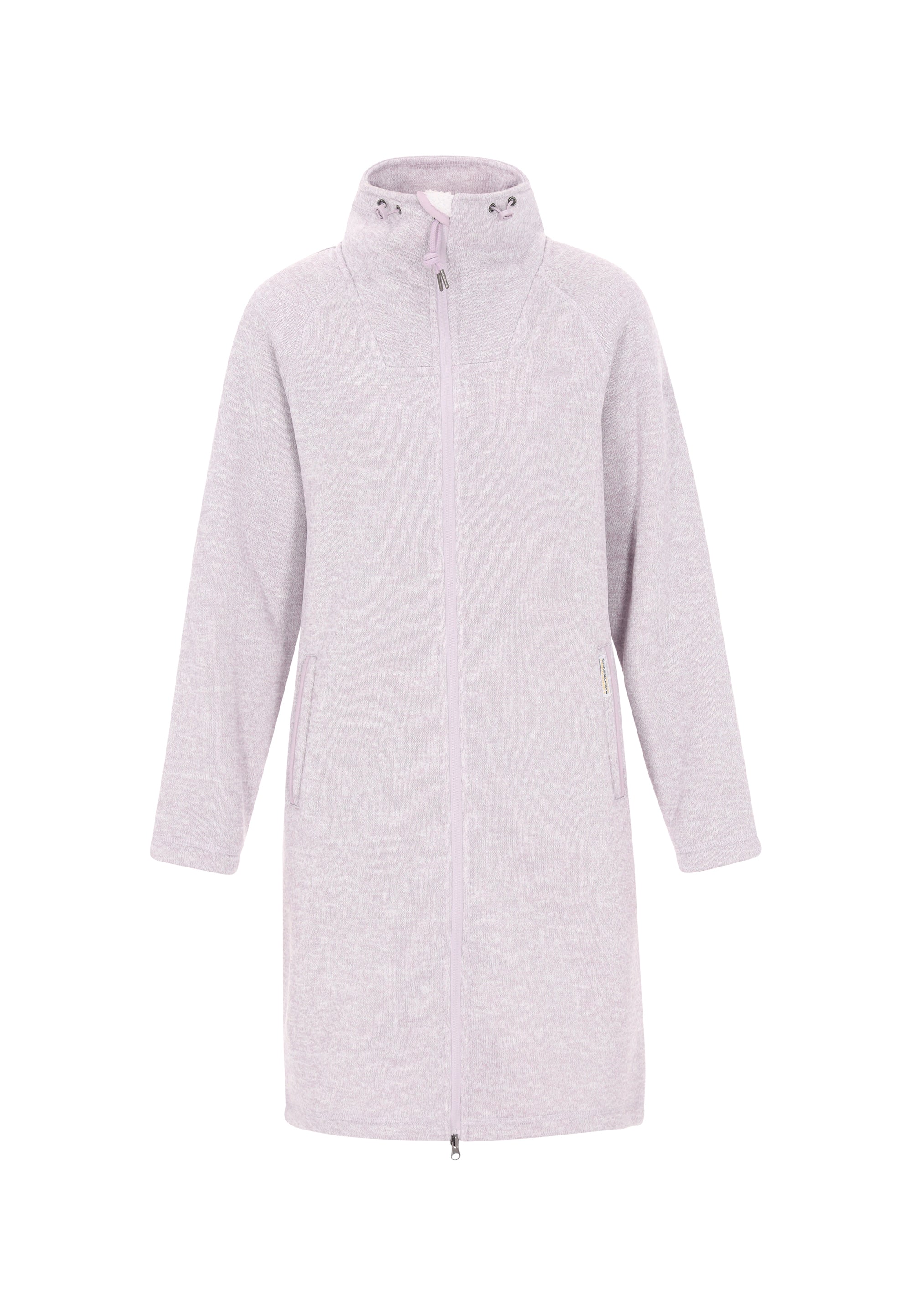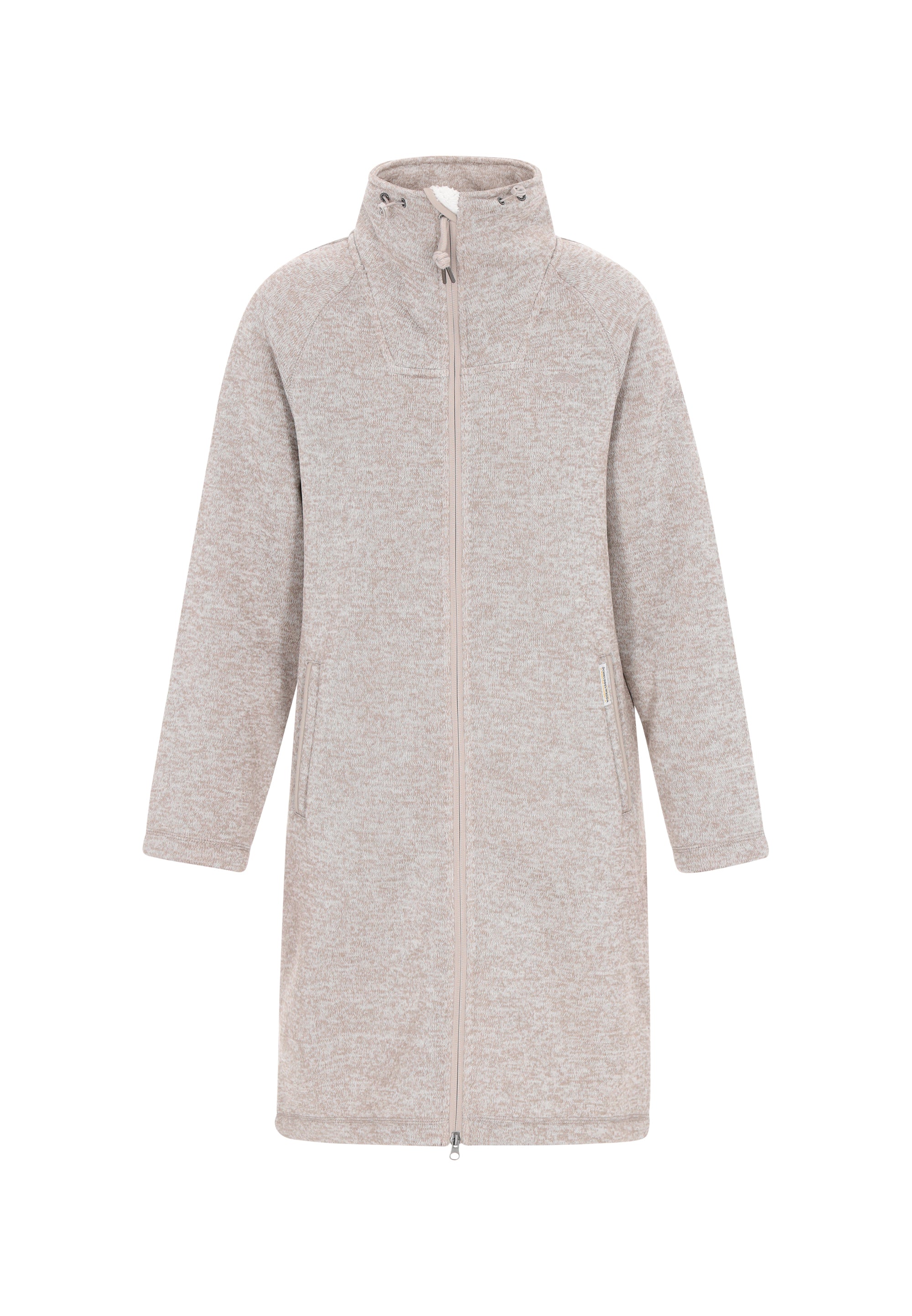 Stay warm in effortless style with this knee length fleece jacket from our Outerwear Collection. Featuring a regular fit and a cozy stand collar, its made from sherpa fleece in a subtle melange pattern for a textured look. The zip-up front, practical pockets, and adjustable drawstring offer both function and comfort, while delicate embroidery adds a refined touch. With its anti-pilling treatment, this jacket combines durability with softnessmaking it a versatile, casual staple for cooler days.