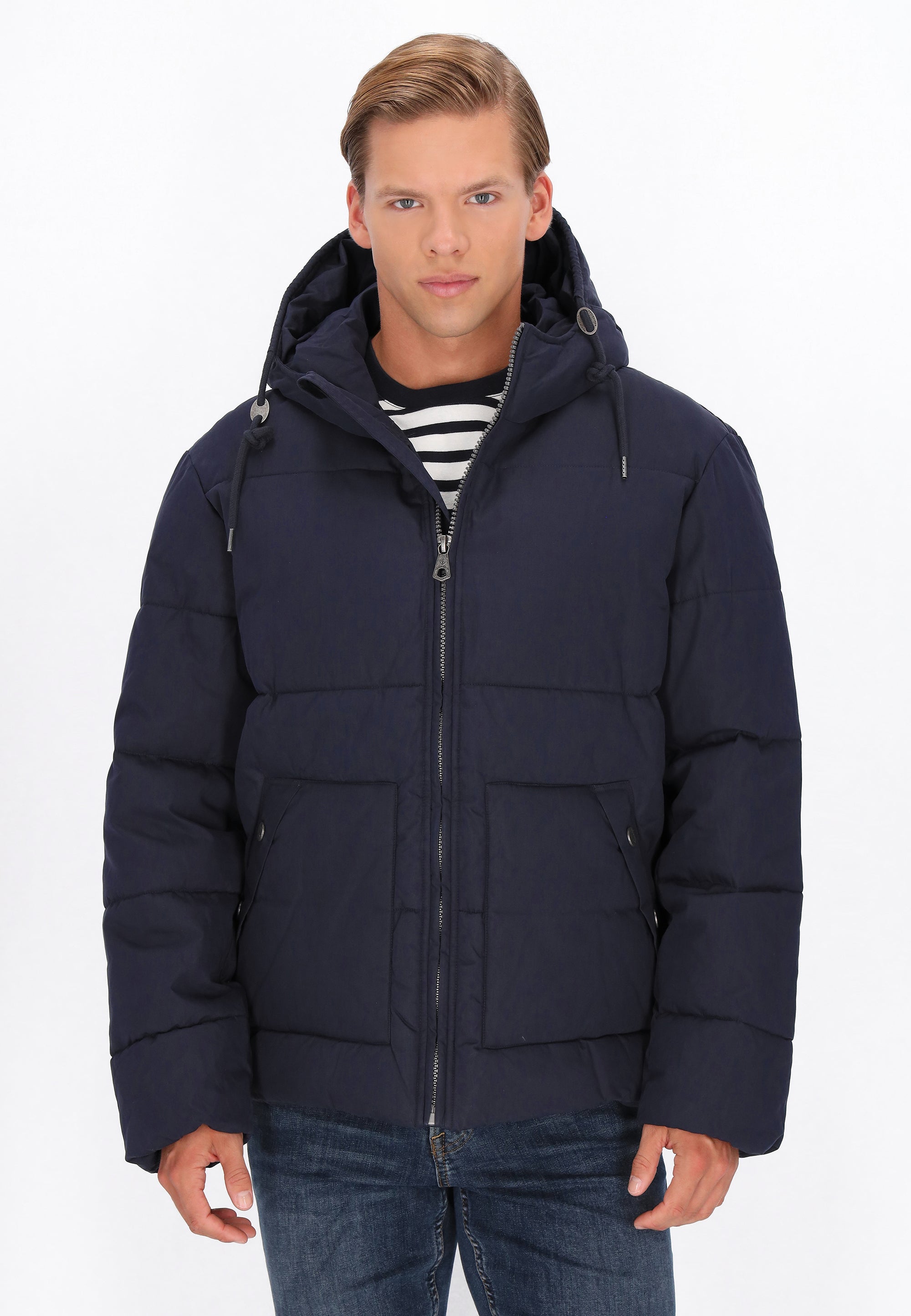 Stay warm with classic appeal in this men's jacket from the DreiMaster Maritim Collection. Designed in a regular fit for everyday comfort, it features a hood with drawstring, a stand collar, and long sleeves for added protection. The zip-up front ensures ease of wear, while practical pockets add functionality. Made from durable woven fabric with a quilted finish, it blends casual comfort with timeless style. Perfect as a versatile outerwear item, this jacket is a must-have for a modern wardrobe.