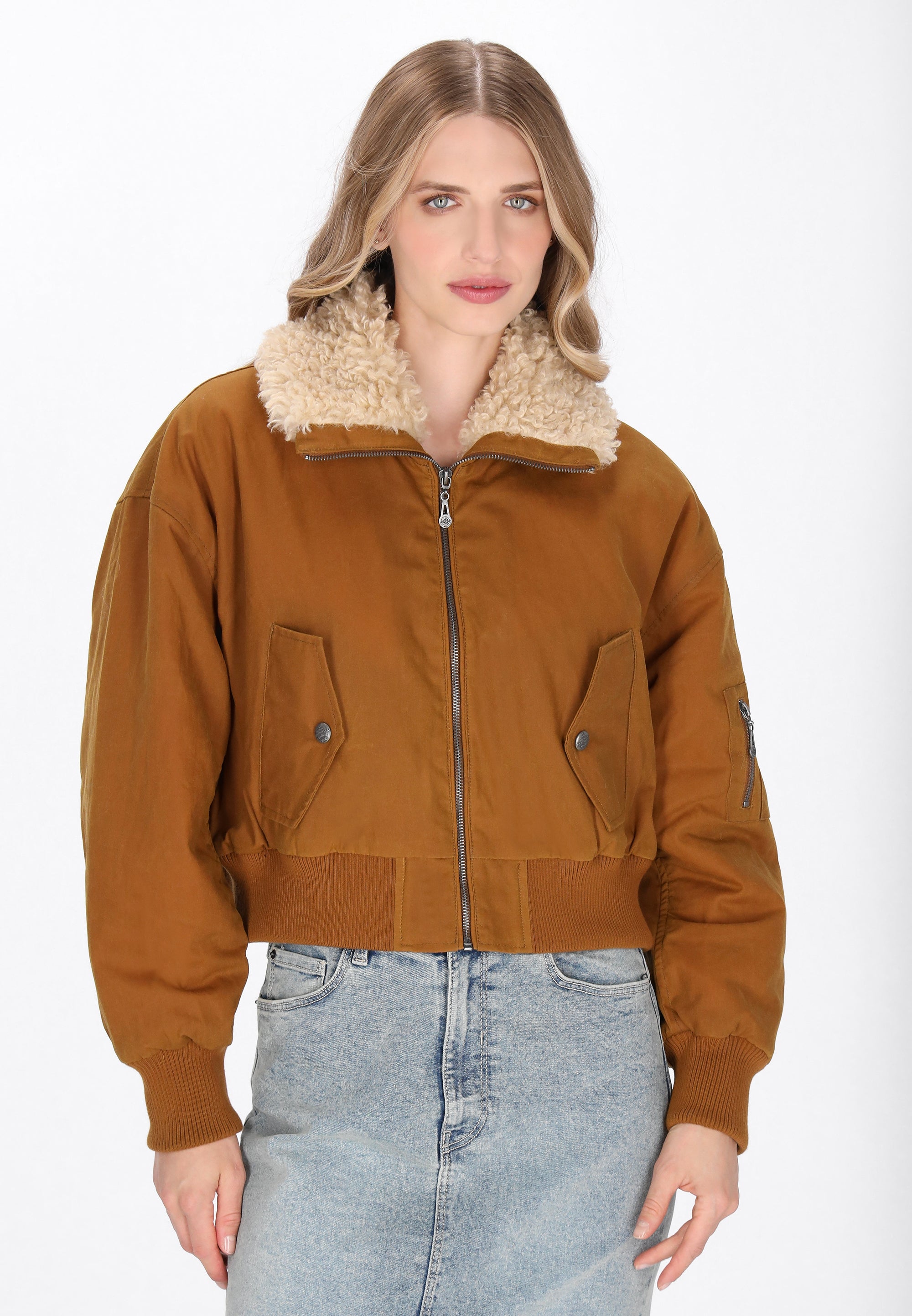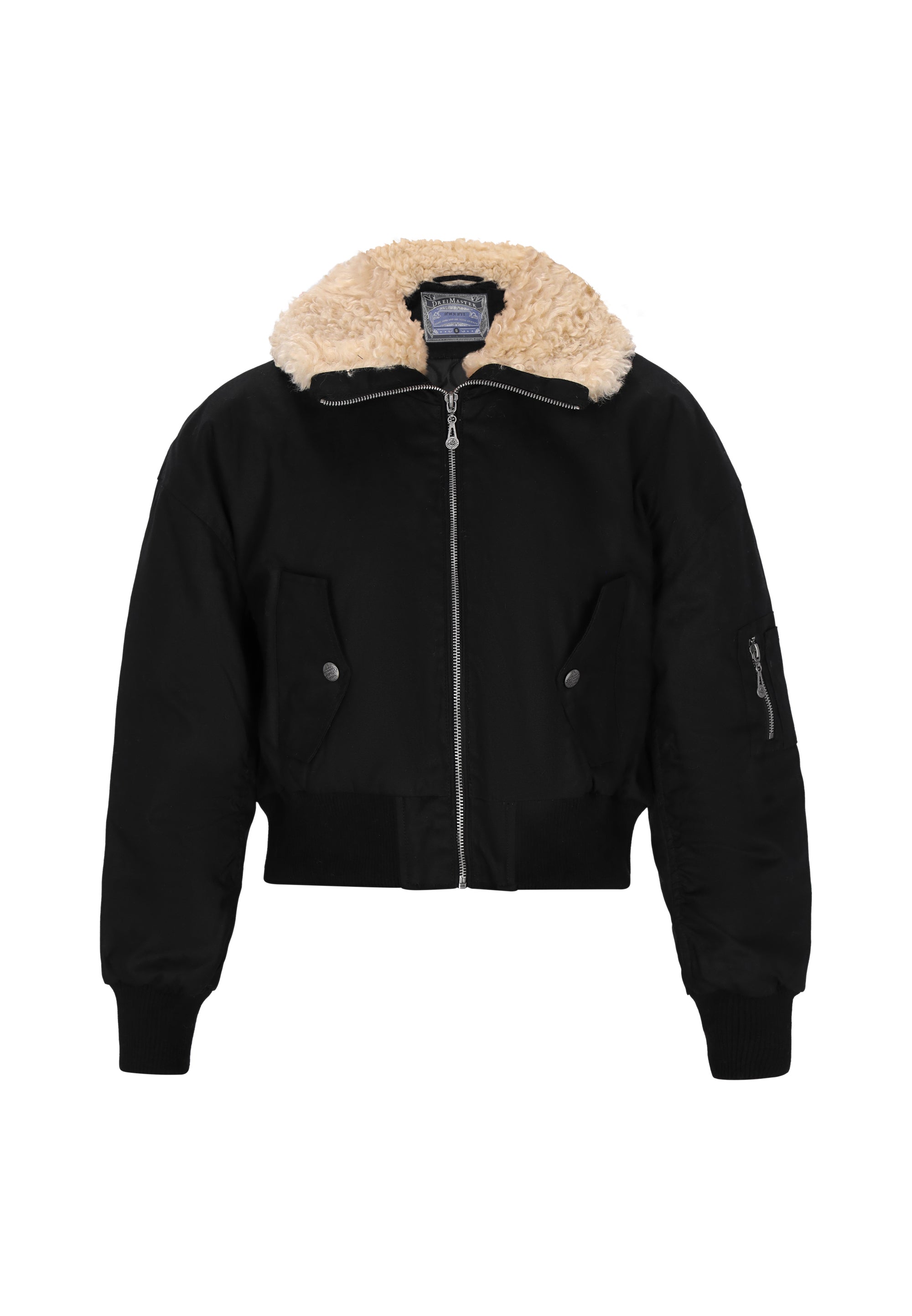 Stay warm in style with this cropped relaxed-fit jacket from the Vintage Collection. Designed with a stand collar, drop shoulders, and a zip-up front, it blends classic and contemporary elements for a timeless look. Made from durable woven fabric with cozy faux fur elements, it features flap pockets and a ribbed hem for added comfort and structure. Finished in a clean plain pattern, this casual outerwear essential brings vintage-inspired charm to your everyday wardrobe.