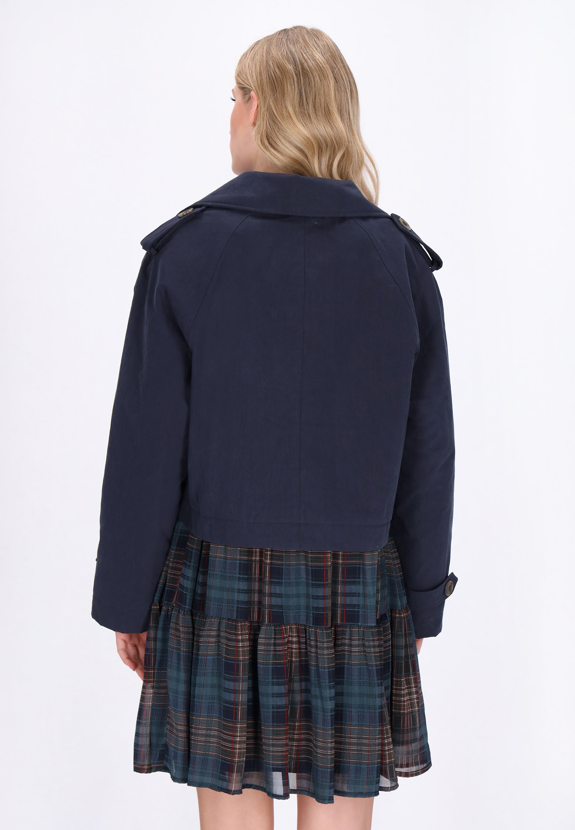 Make a statement with this relaxed-fit jacket from our Vintage Collection. Featuring a classic lapel collar and V-neck, its double-breasted button-up design adds timeless sophistication. Raglan long sleeves and practical pockets combine comfort with functionality, while the woven plain fabric offers casual durability. Perfect for layering, this jacket blends vintage charm with modern casual style.