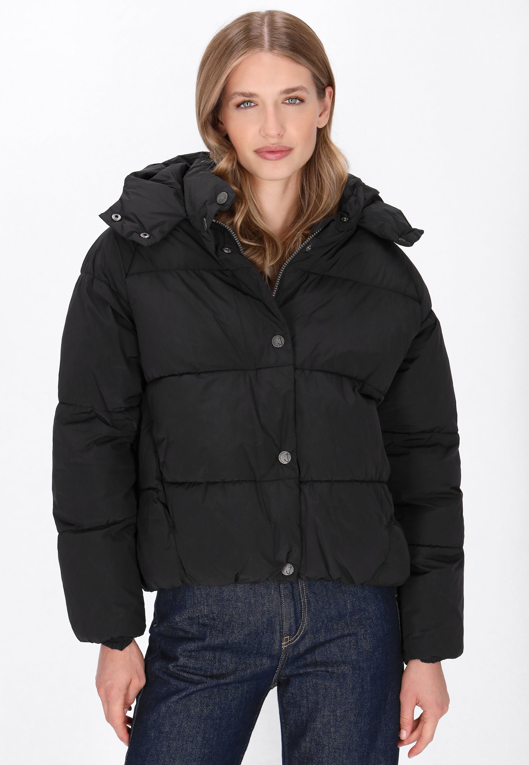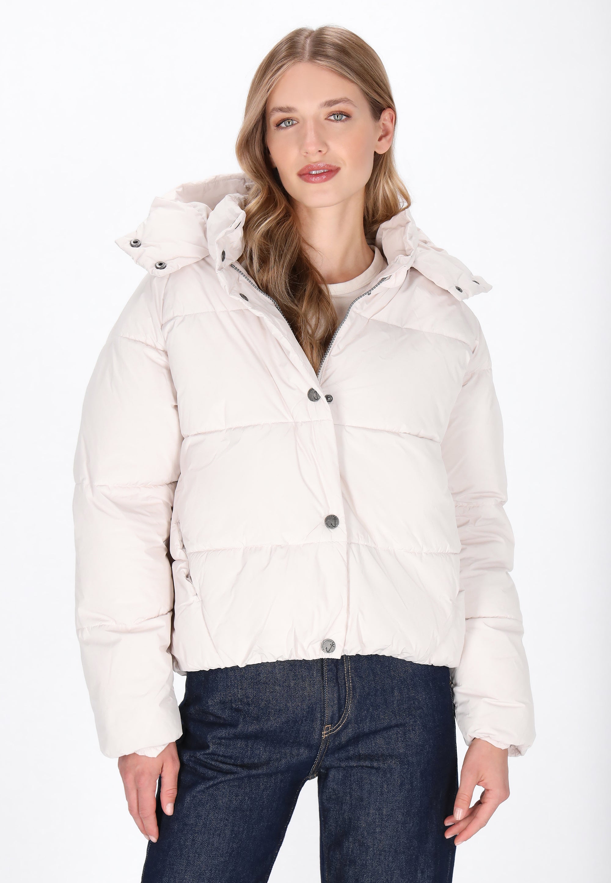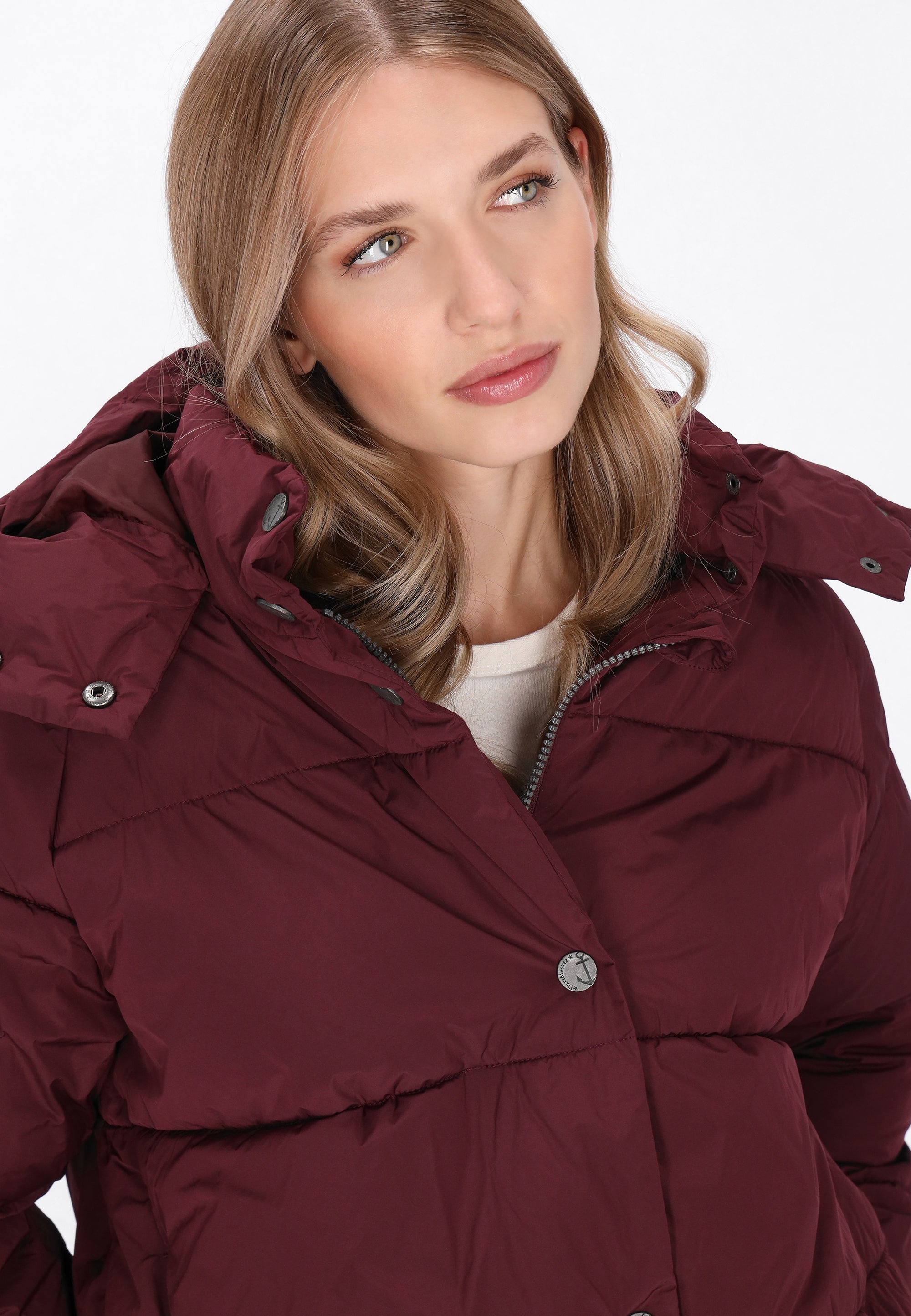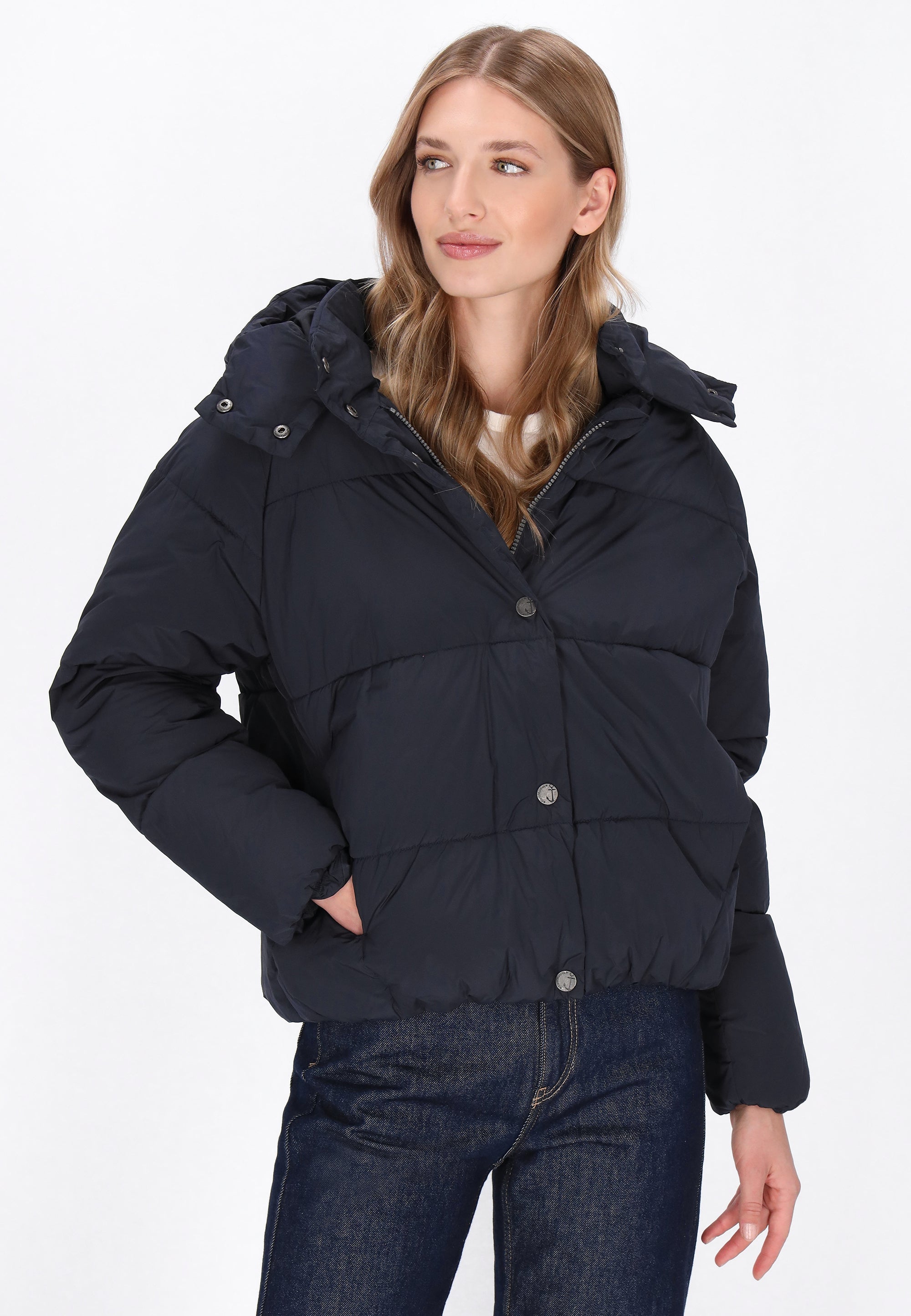Stay warm and stylish with this puffer jacket from the DreiMaster Maritim Collection. Designed in a regular fit, it features a hood, raglan long sleeves, and a secure zip-up front with snap buttons for extra protection. Functional pockets add practicality, while the plain woven fabric keeps the look clean and versatile. Casual yet comfortable, this jacket is the perfect outerwear item for a modern maritime-inspired wardrobe.
