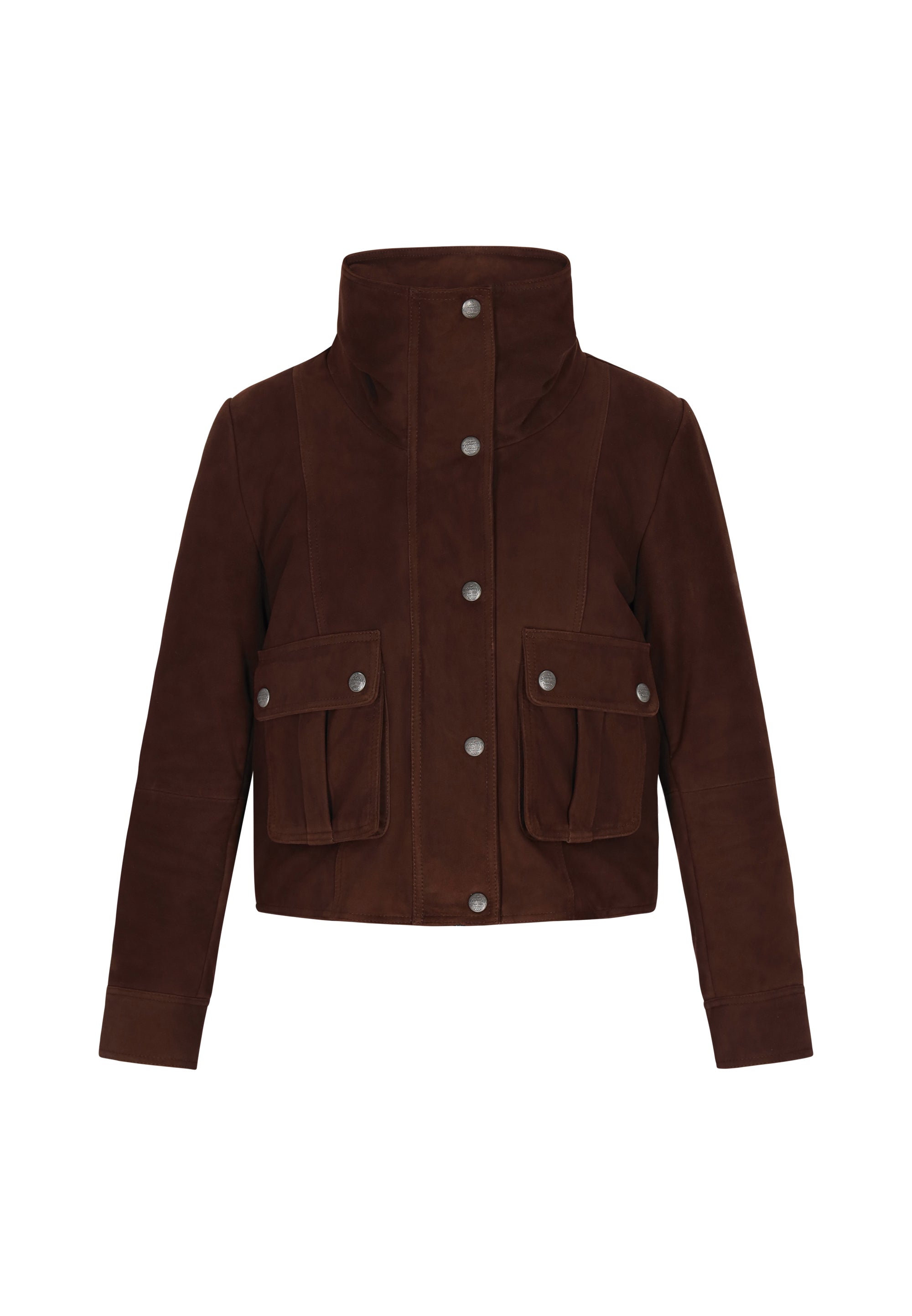 Classic meets modern in this suede jacket from Vintage Collection. Crafted from soft, luxurious goat suede, the jacket combines a relaxed fit, stand-up collar, and classic zipper and button closure to create a timeless yet practical cut. Long sleeves, flap pockets and a plain-colored pattern emphasize its casual character, which easily fits into everyday outfits. It's the perfect choice for those who appreciate authenticity and classic style at its best.