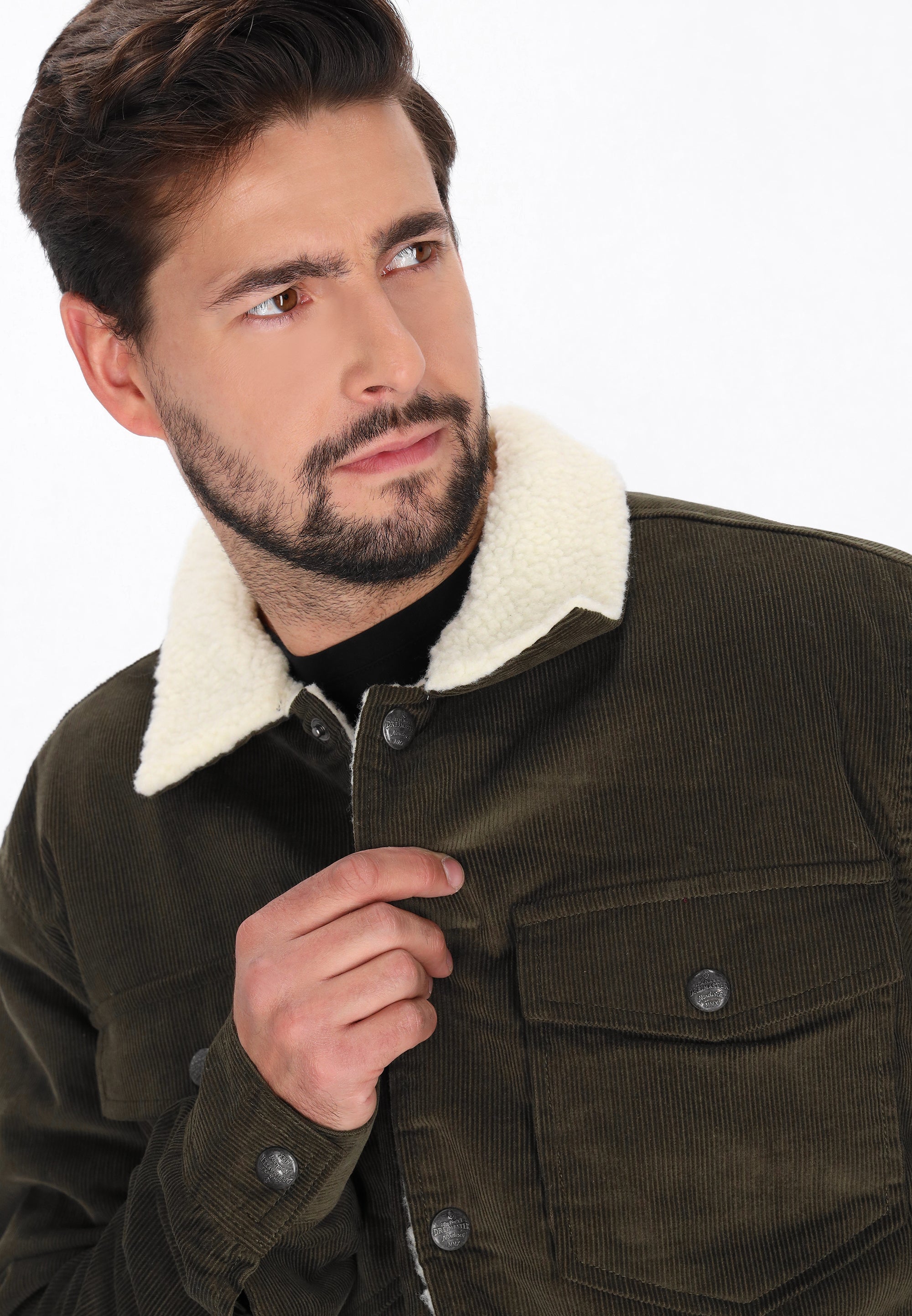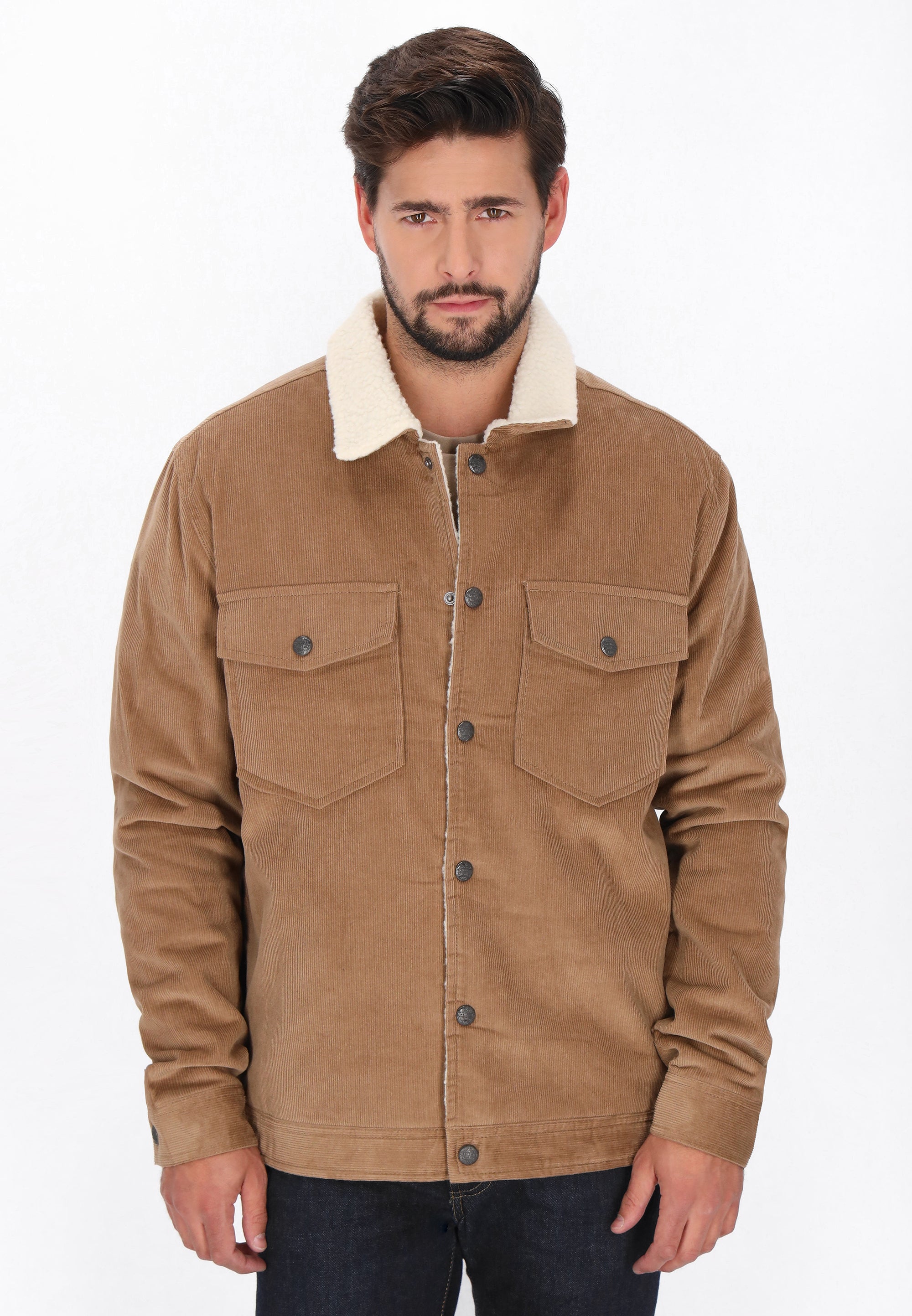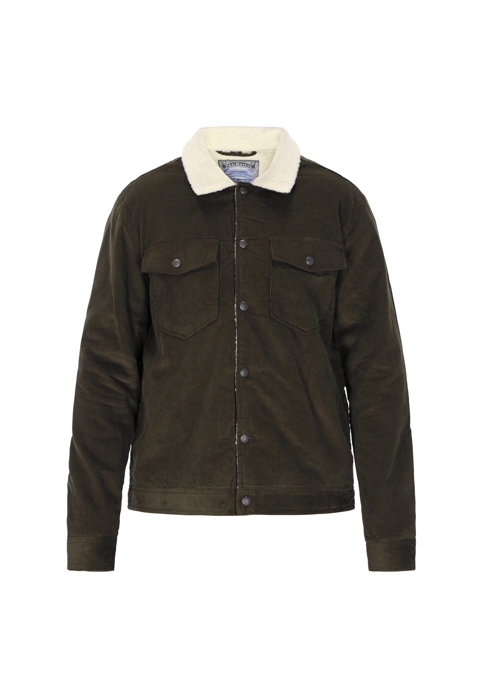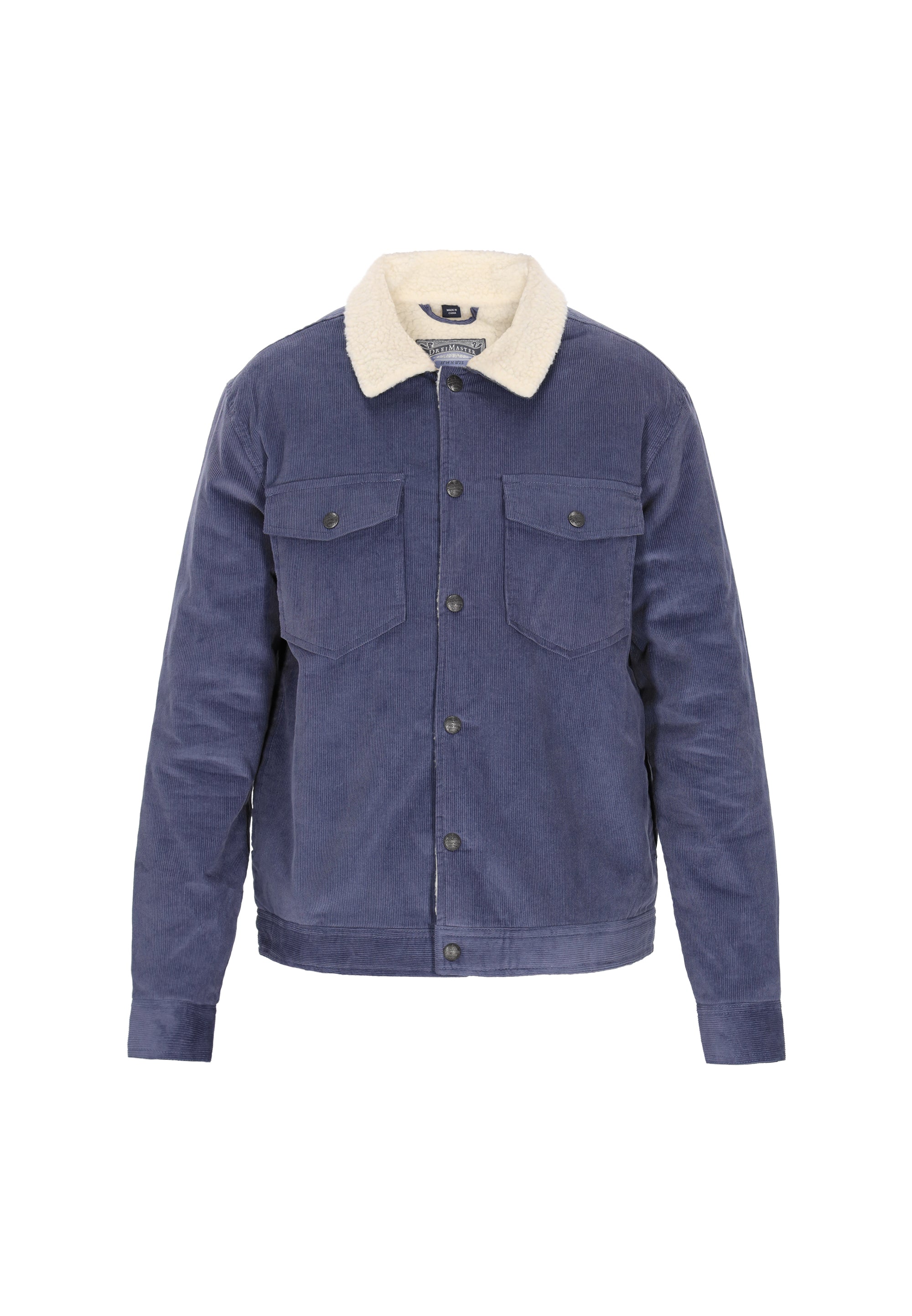 This jacket from the DreiMaster Vintage Collection is the perfect blend of classic style and modern comfort. Crafted from soft corduroy with a cozy teddy lining, it provides warmth and comfort on cooler days. The regular fit allows for ease of movement, while the classic collar, snap closure, and chest pockets add a timeless, casual touch. The simple, sleek design makes the jacket versatile and easy to styleperfect for everyday wear for lovers of classic styles with a retro touch.