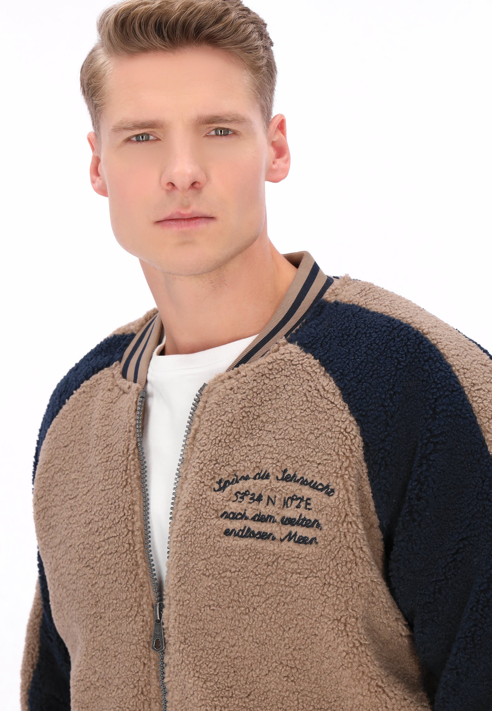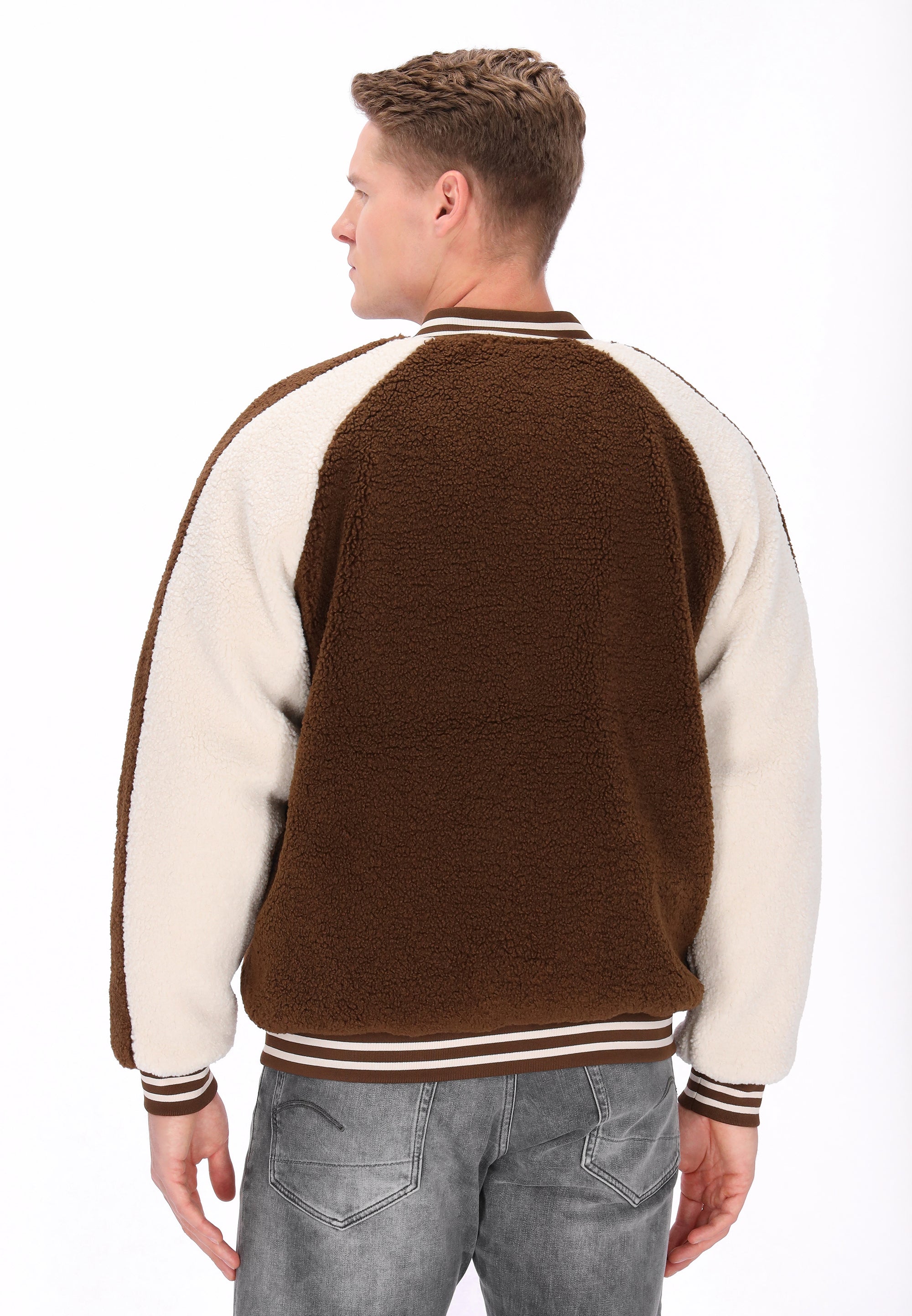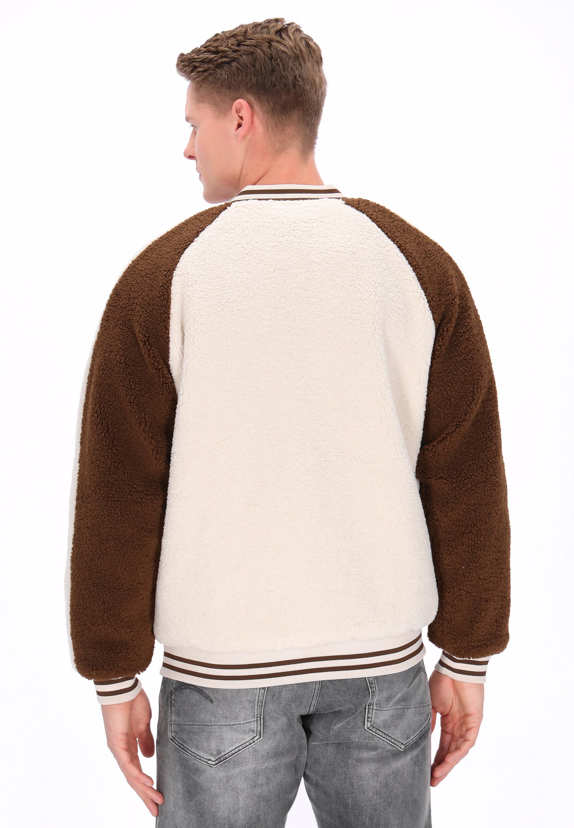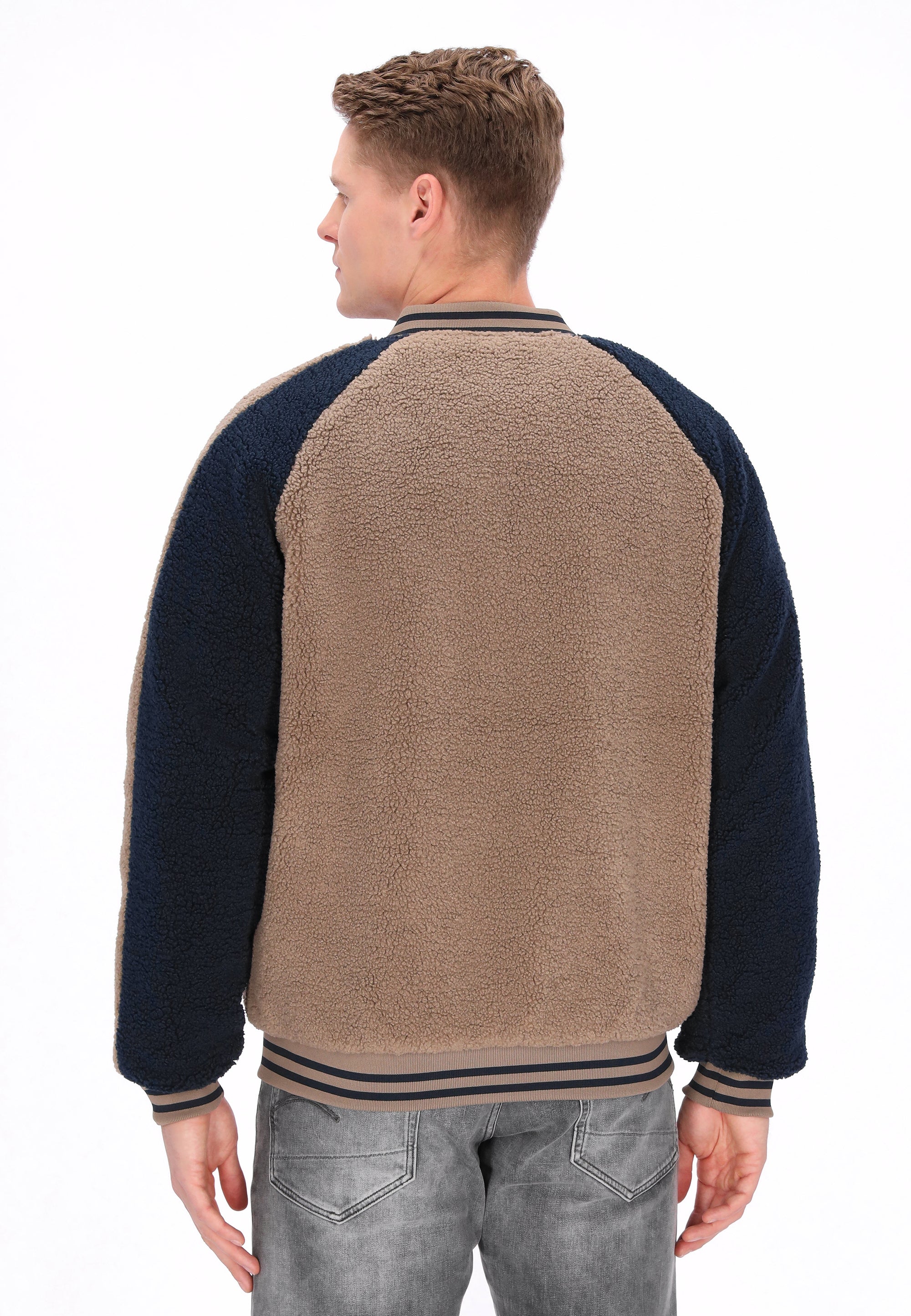 The college jacket from the DreiMaster Vintage Collection is a stylish nod to classic style with a sporty twist. This relaxed-fit jacket is crafted from soft teddy fabric for exceptional comfort and warmth. Raglan sleeves, a ribbed collar, and ribbed cuffs and hem accentuate the distinctive college style. A zipper closure, practical pockets, and subtle embroidered details give the jacket a unique character. Contrasting color inserts add a modern touch, creating the perfect blend of casual comfort and timeless design.
