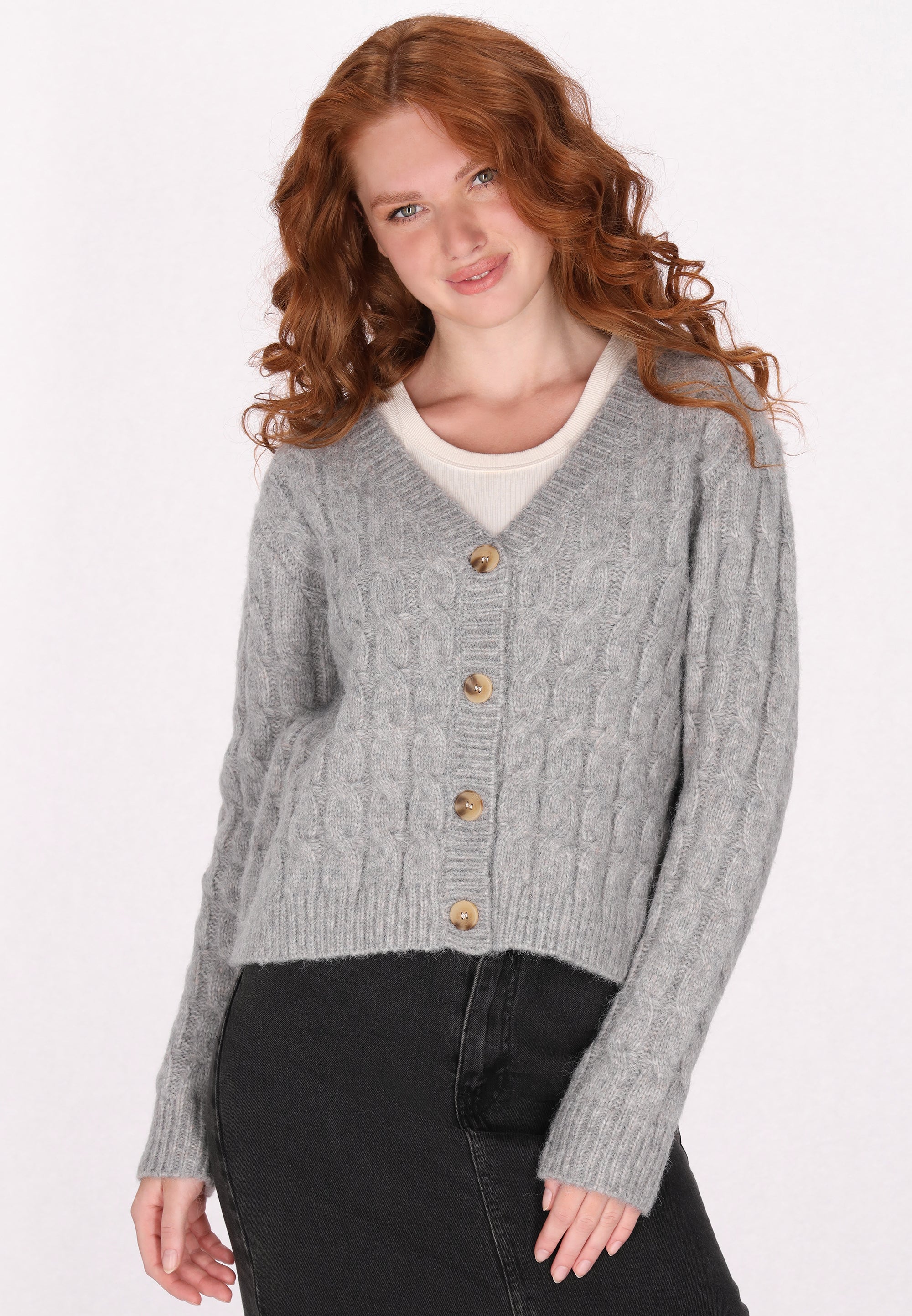 Expand your winter wardrobe with this cozy cardigan. The cable knit provides a special structure, while the V-neck and button placket at the front create a classic look. Perfect for layering in cold weather, this cardigan features ribbed details at the cuffs, hem and neckline for added style. Stay warm and stylish by pairing them with your favorite outfits.