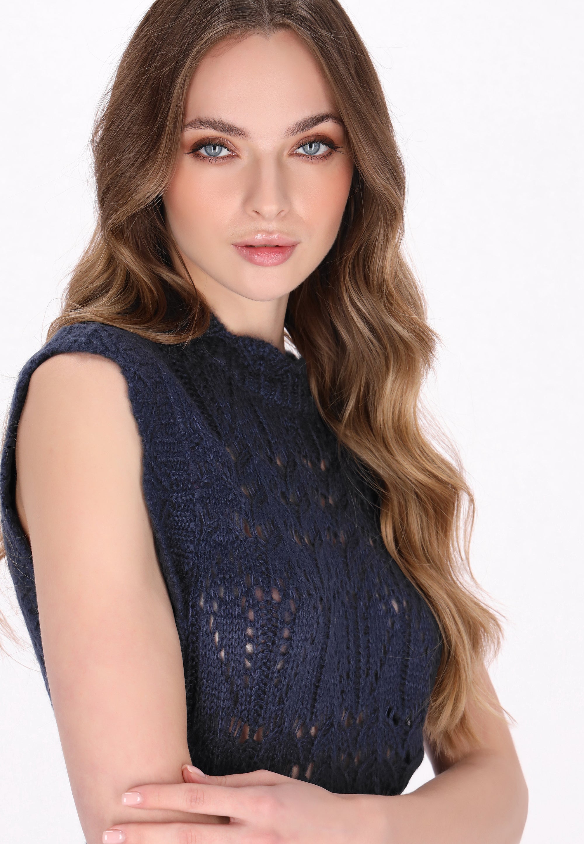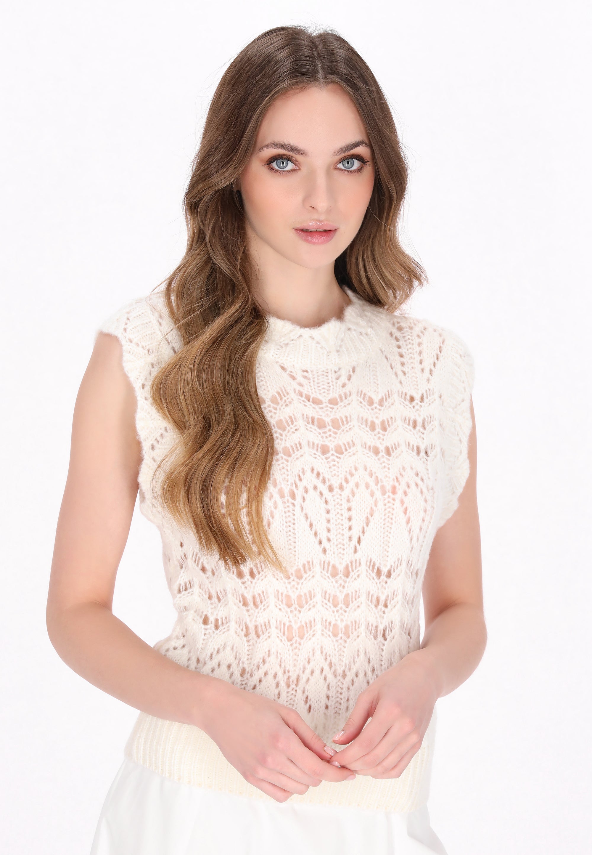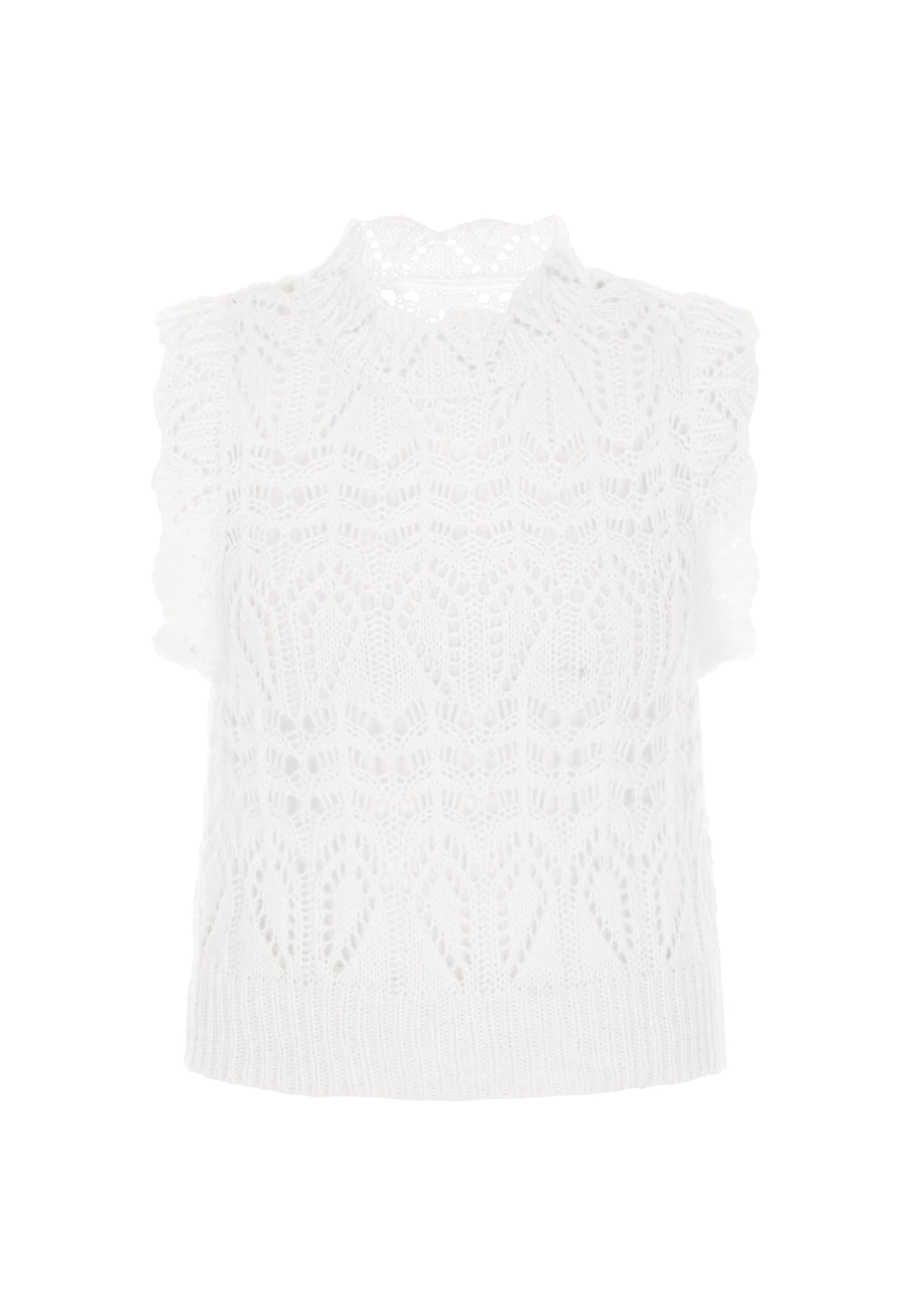 Elevate your wardrobe with this vest from our Comfy collection. Featuring a round neckline, it features an intricate openwork pattern that combines lace elements for a stylish look. The regular fit ensures comfort, making it perfect for warmer days or as a layering element in any outfit.