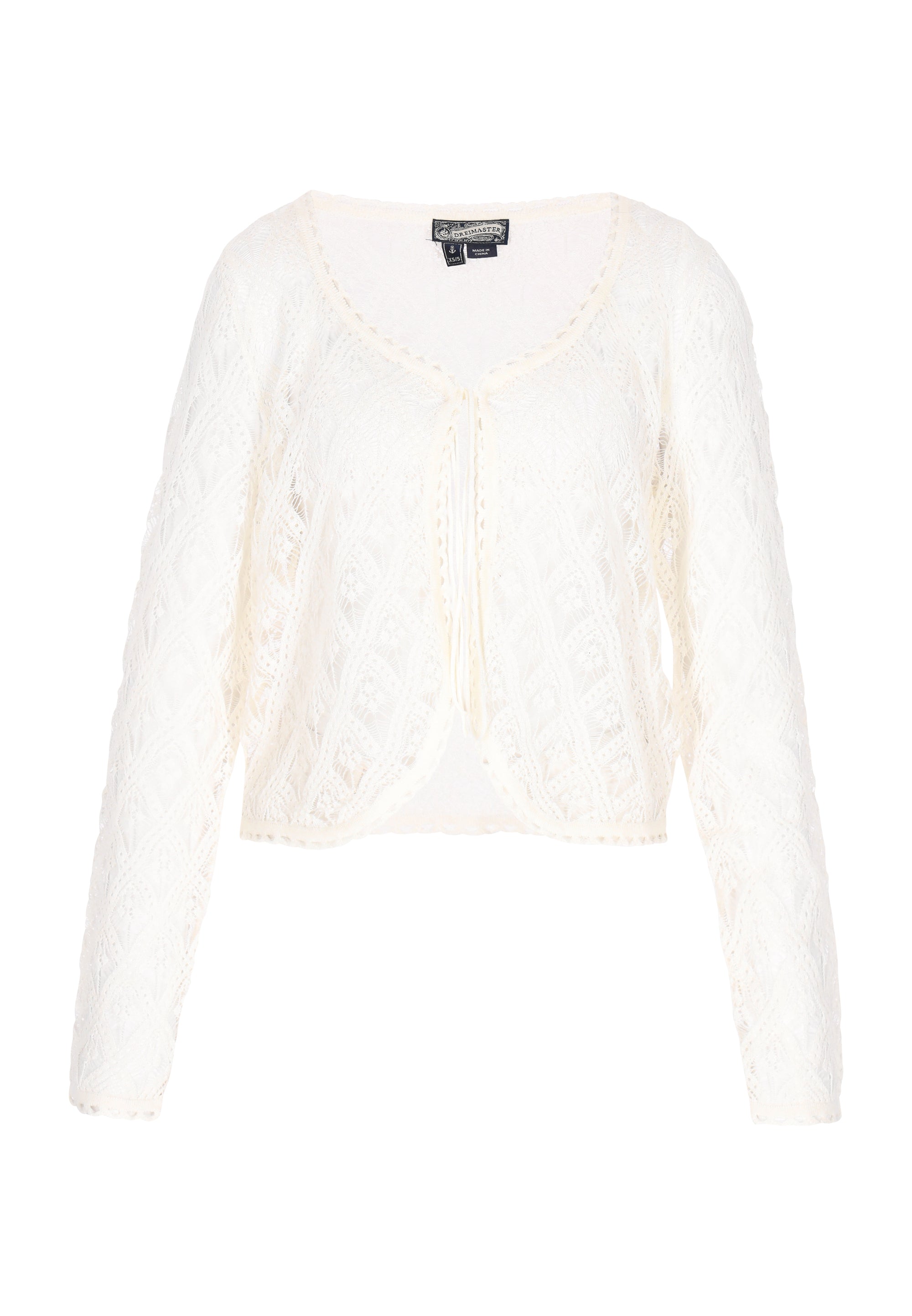 Revel in the timeless charm of this loose cardigan. With a round neckline and long sleeves with a tie fastening, it exudes casual elegance. The ajour knit pattern and decorative trim add a touch of vintage style to your everyday fashion. Comfortable and versatile, this cardigan is perfect for wearing with any outfit, offering both style and warmth. Part of the Vintage collection.