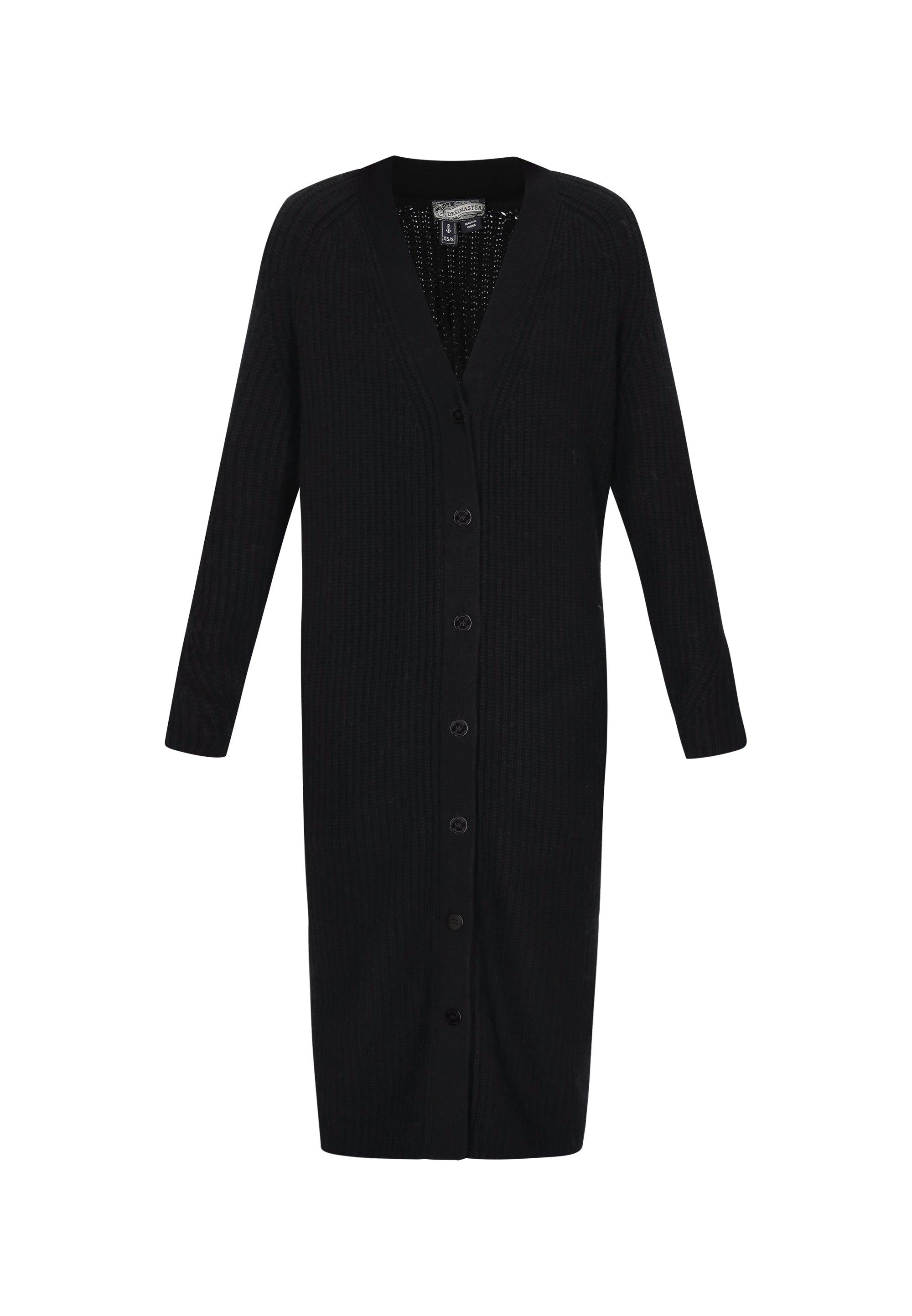 Women's long cardigan with a regular cut that combines timeless style with everyday comfort. Made of soft, knitted fabric, it provides comfort in wearing and fits perfectly on the figure. The model with a heart neckline, long sleeves and a classic button closure, maintained in a smooth pattern. Ideal for layered styling - both casual and retro. An excellent choice from the Vintage Collection, combining classic, comfortable and casual elegance.
