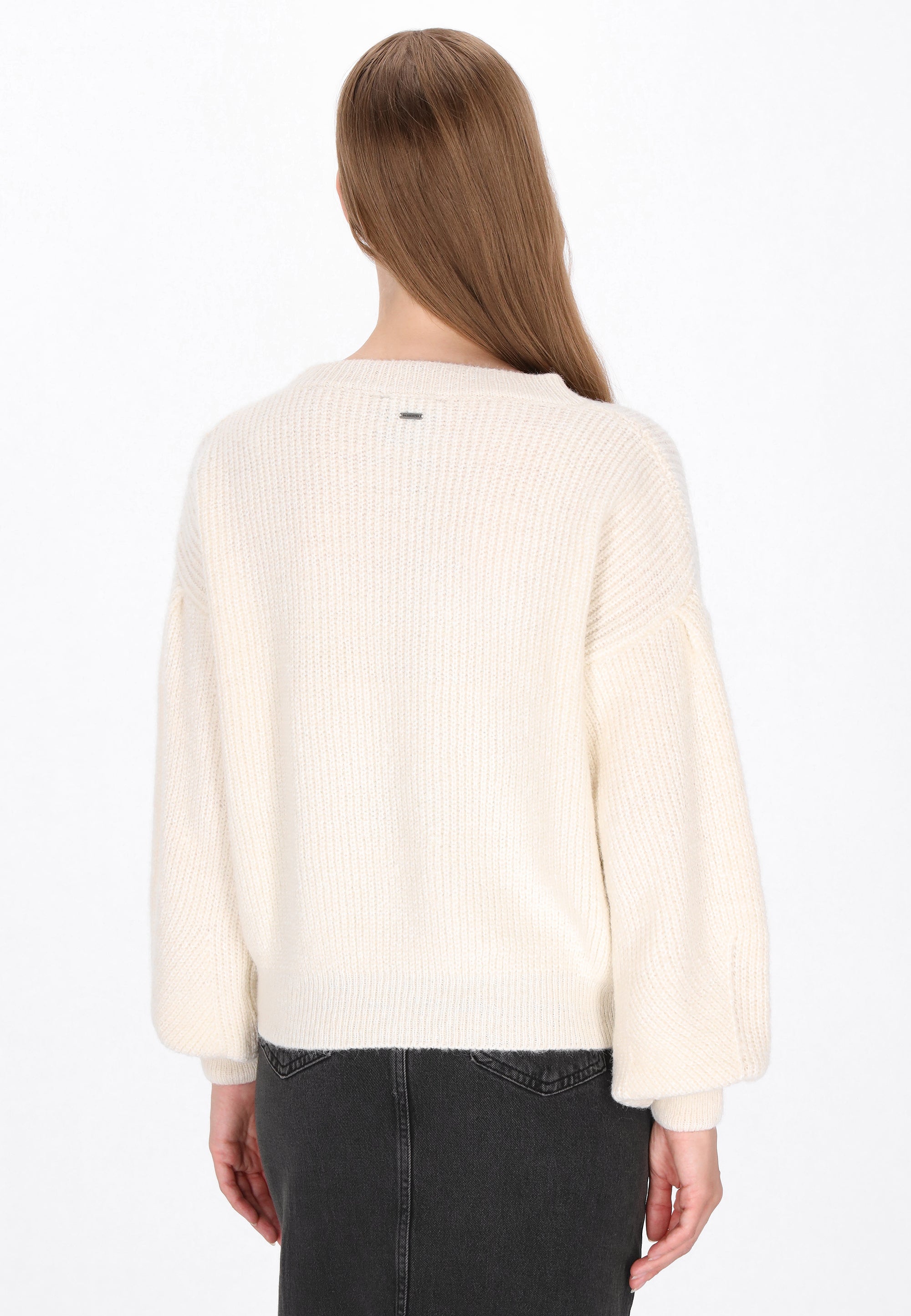 This loose-fitting sweater combines comfort with a timeless aesthetic. Crafted from soft, knit fabric, it provides warmth and coziness on cooler days. Its distinctive sleeves and dropped shoulders lend it a unique, casual style and subtle elegance. The round neckline and simple, plain pattern make it a perfect addition to casual, versatile outfits, perfect for everyday wear. It's part of the Vintage Collection.