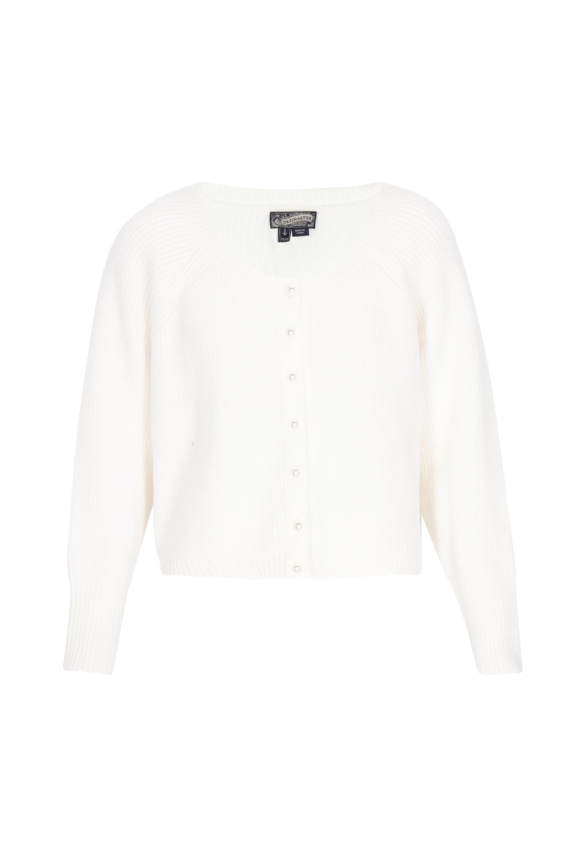 This loose-fitting cardigan features a deep, round neckline and long raglan sleeves, crafted from soft, smooth knit fabric. Featuring a button closure, it offers everyday comfort and coziness. Timeless and casual, it's perfect for those who value comfort and style. This sweater is part of the Vintage Collection.