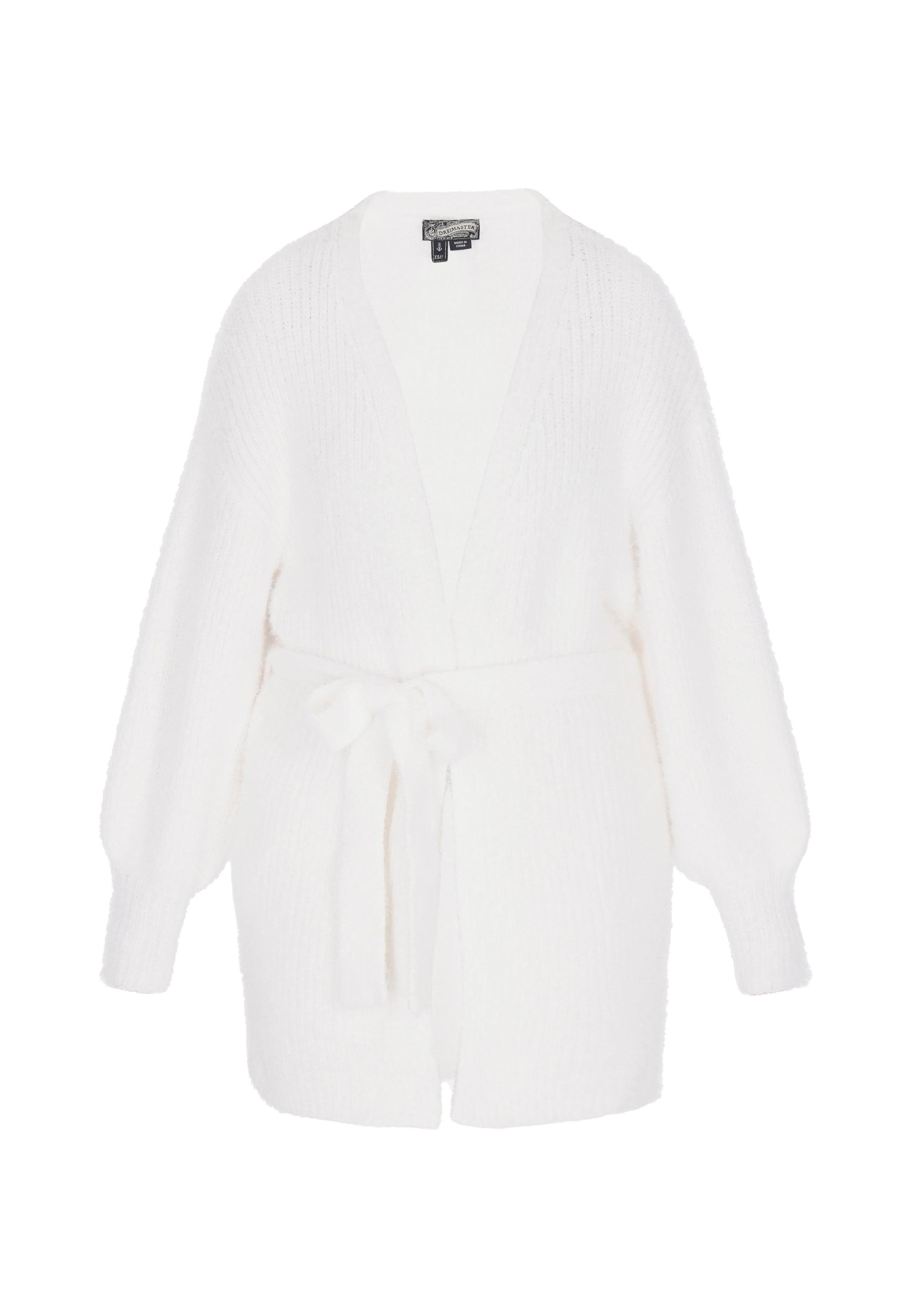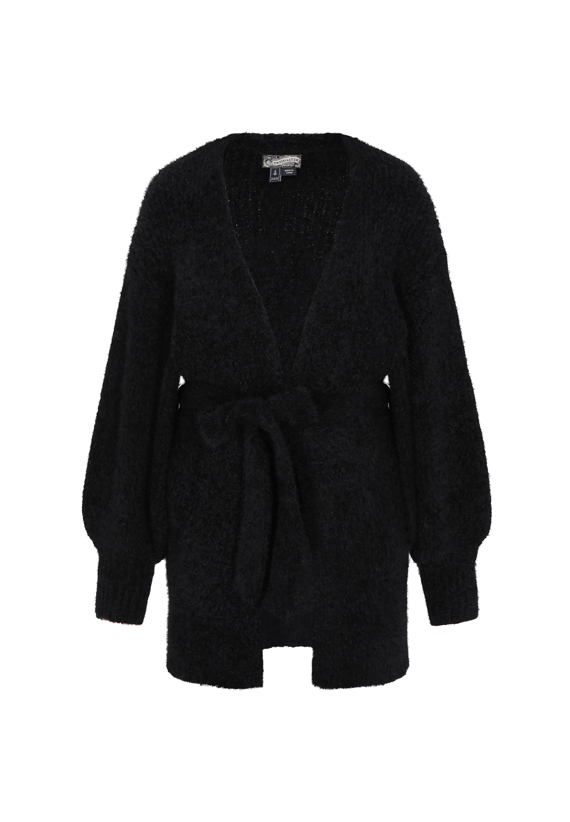 This relaxed-fit cardigan combines comfort with timeless style. Crafted from soft, knit fabric, it provides warmth and comfort for everyday wear. Its distinctive sleeves and dropped shoulders give it a unique, lightweight, and fashionable feel. The open front with a belt allows for a custom fit and flattering silhouette, making this cardigan the perfect addition to casual, cozy outfits. Part of the Vintage Collection.