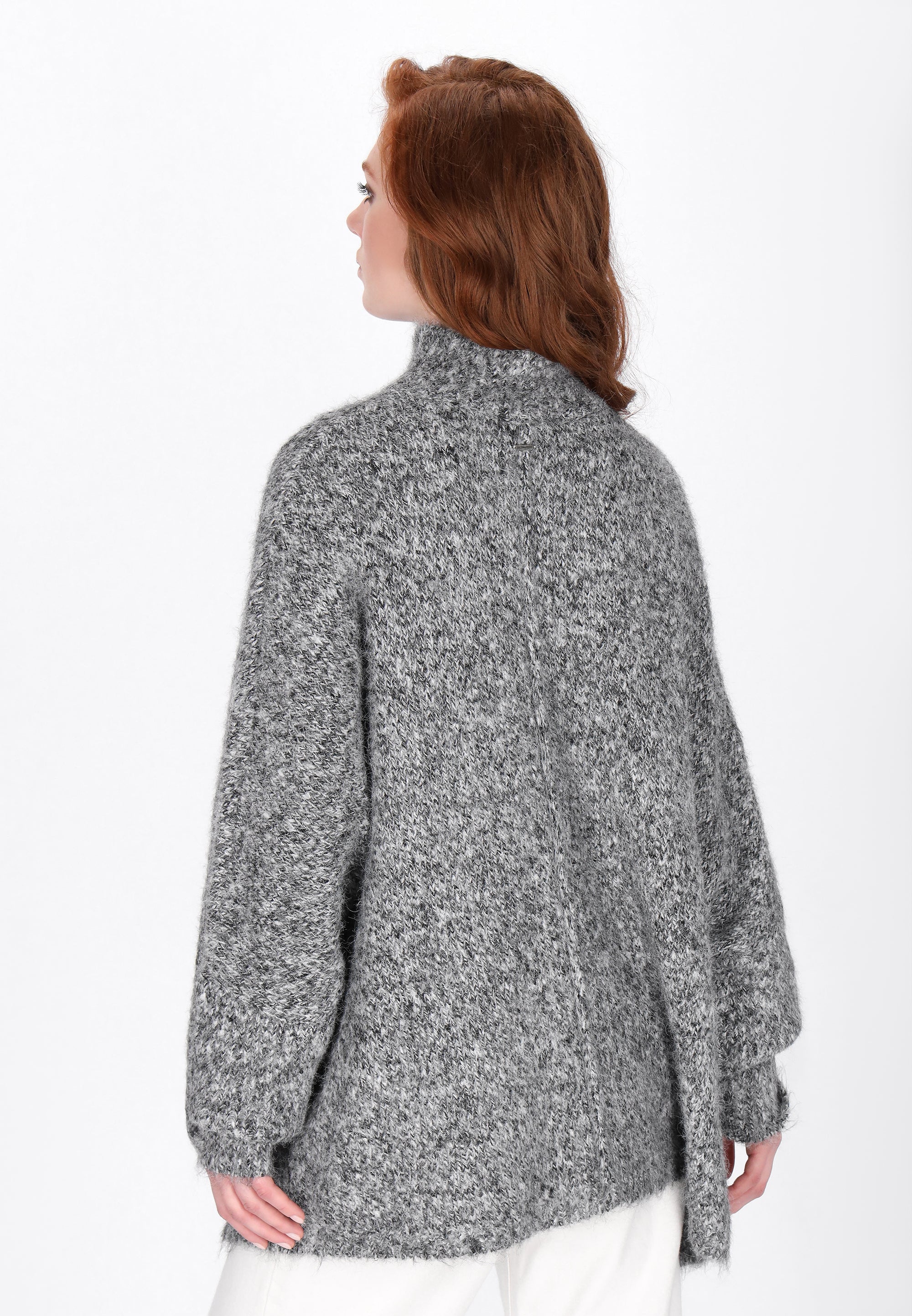 Keyword: casual, comfortable, drop shoulder, knitted, long sleeves, loose fit, melange pattern, poncho, stand collar, timeless, vintage collection