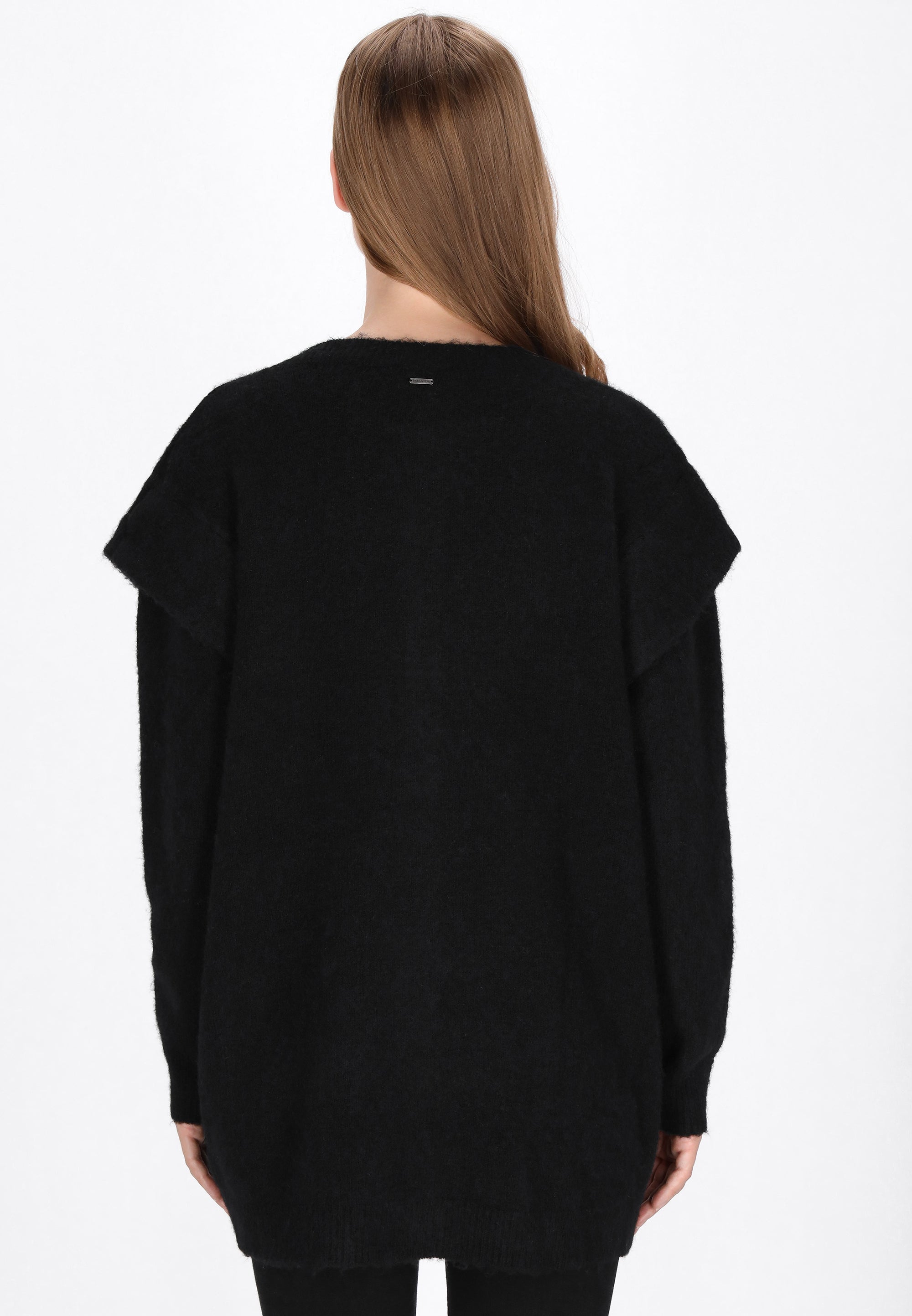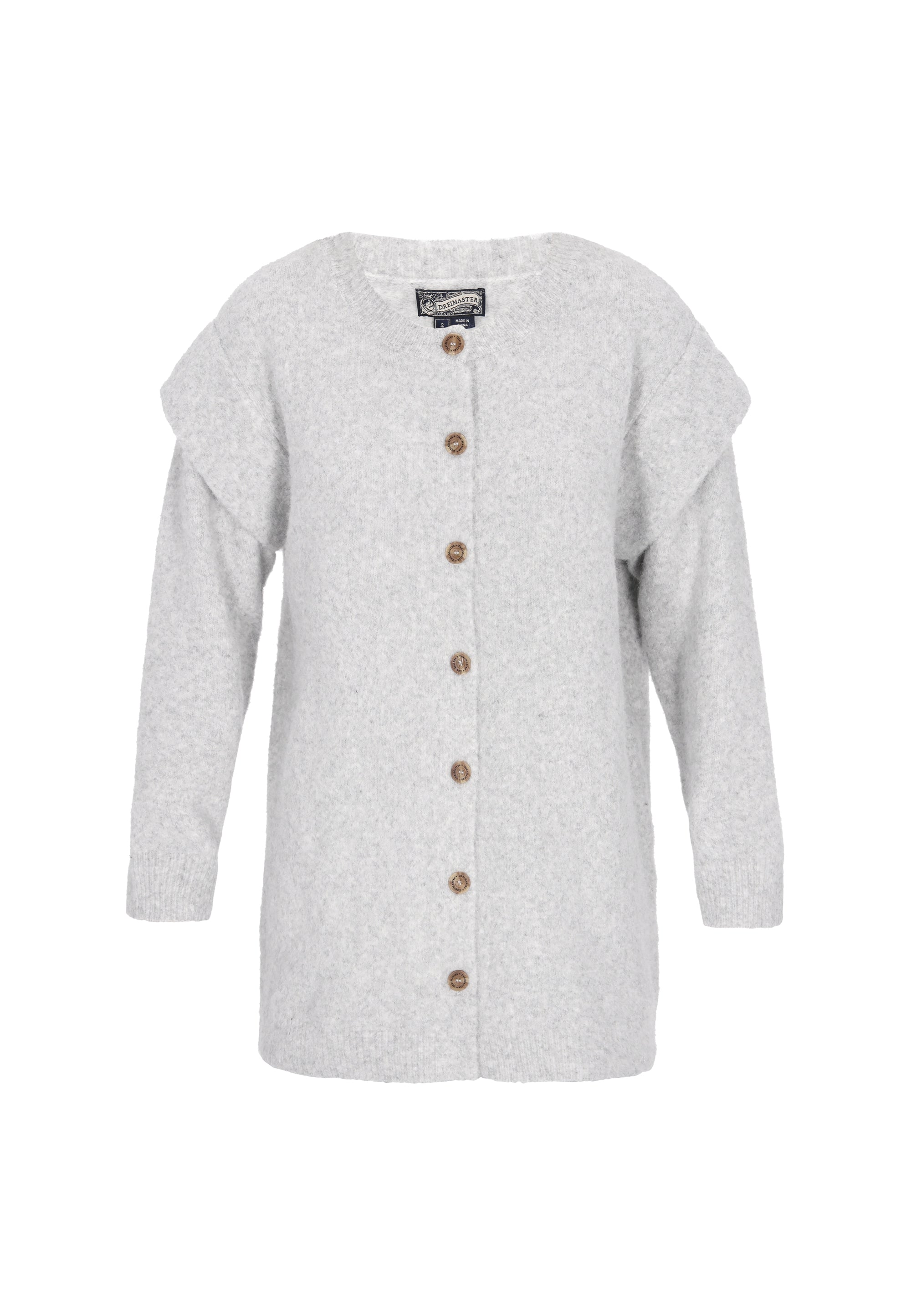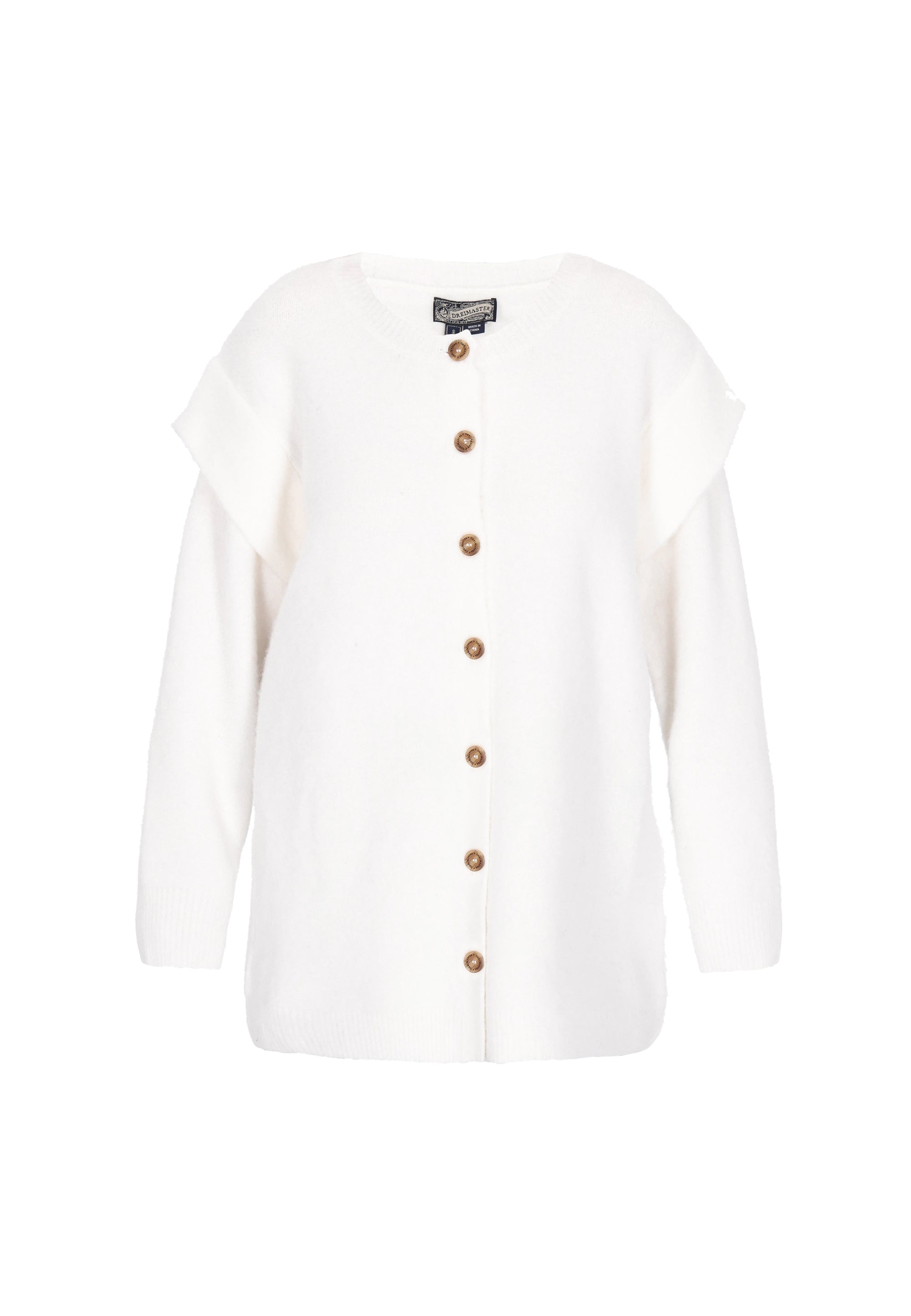 A versatile cardigan from the Vintage Collection, combining timeless style with everyday comfort. Loose cut and lowered shoulder line provide freedom of movement and casual character. The classic round neckline and long sleeves emphasize the simple but stylish form. It is buttoned and made of soft, knitted fabric with a smooth pattern. Perfect for layering - comfortable, casual, yet stylishly retro.