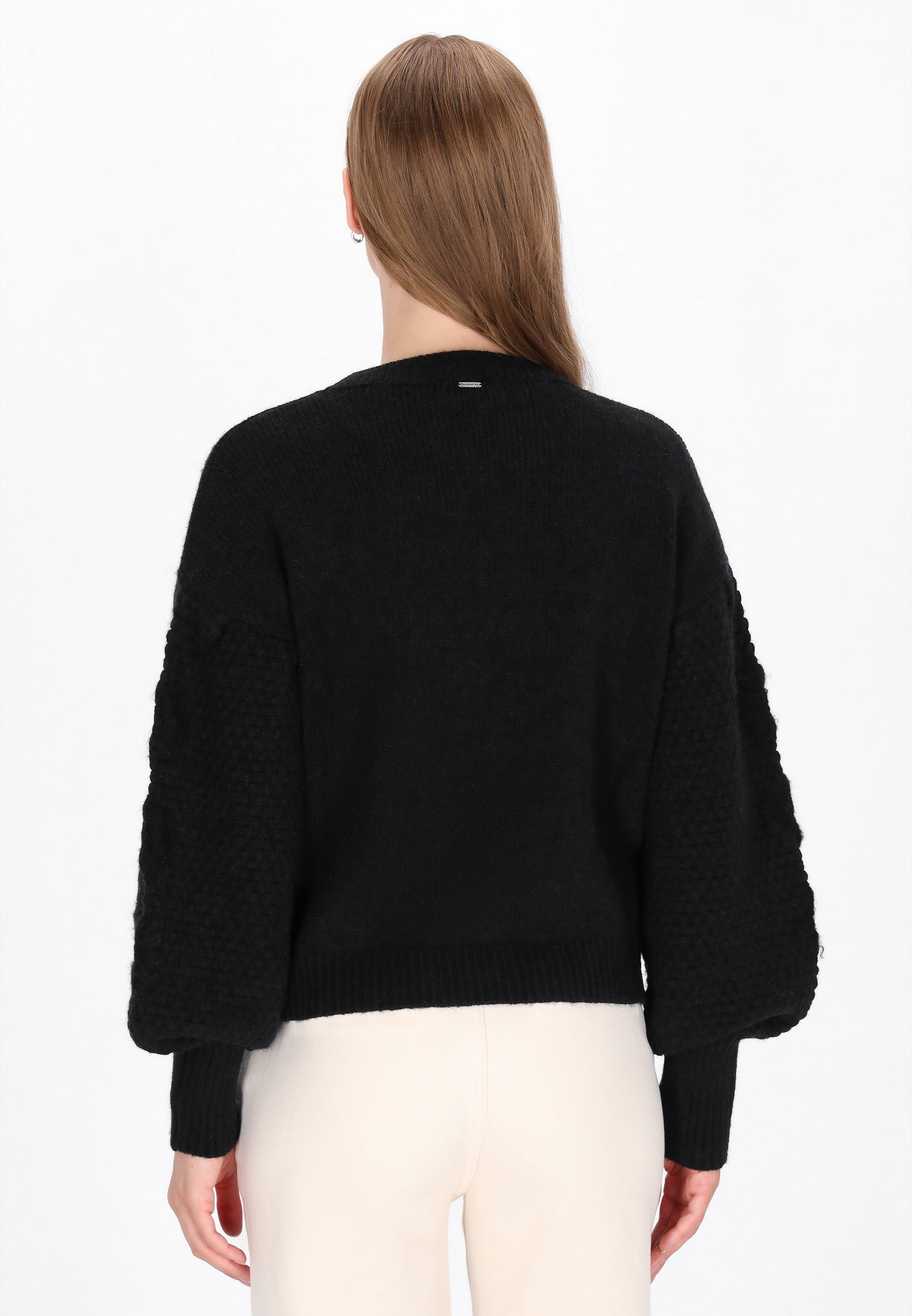 A loose-fitting sweater from the Vintage Collection, crafted from a soft, knit fabric with a textured floral pattern for a subtle elegance. The round neckline and long, puffed sleeves accentuate the classic, feminine silhouette. Delicate embroidery adds a unique charm and artistic touch. This sweater combines comfort, coziness, and timeless style, perfect for casual, stylish outfits on cooler days.