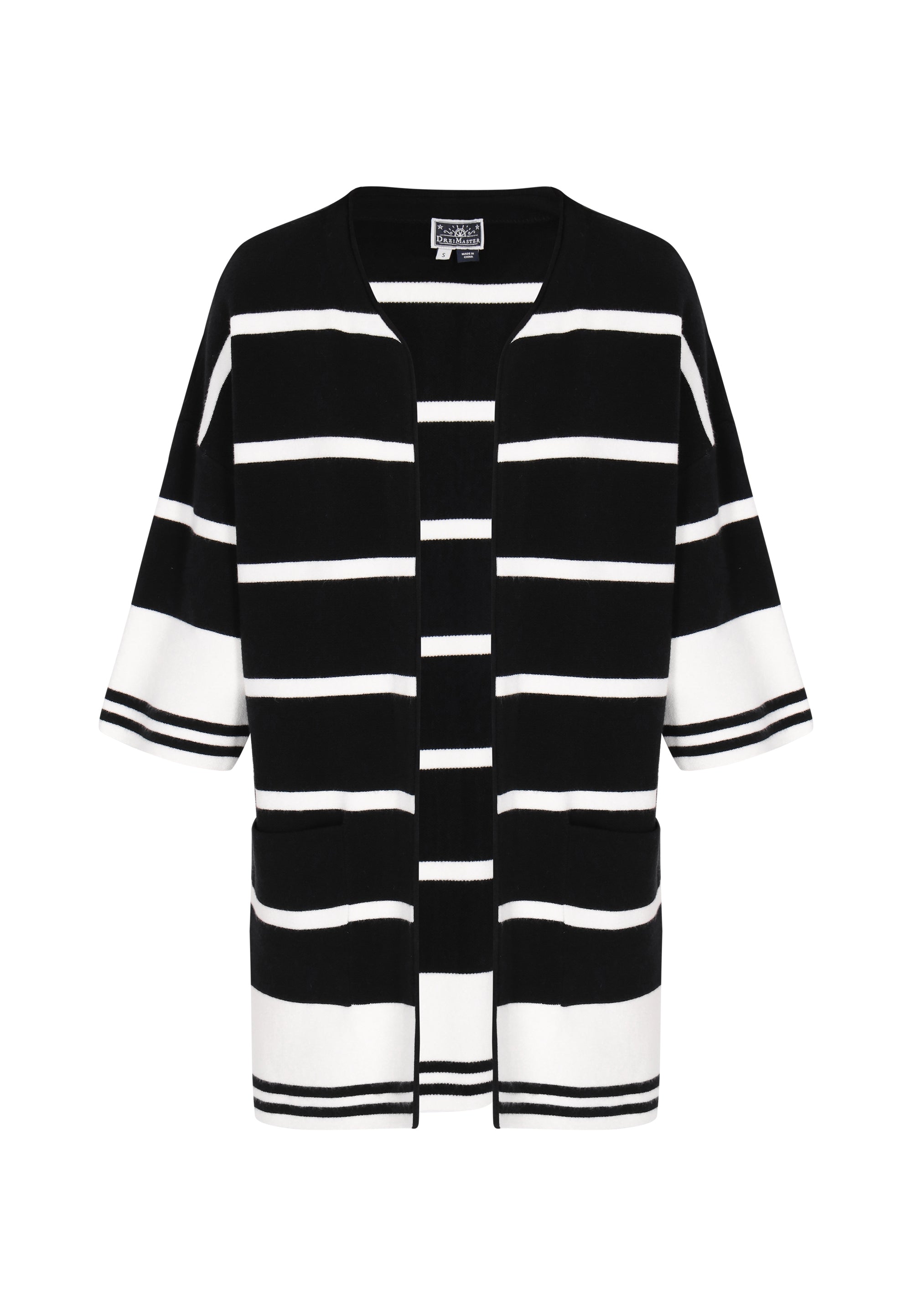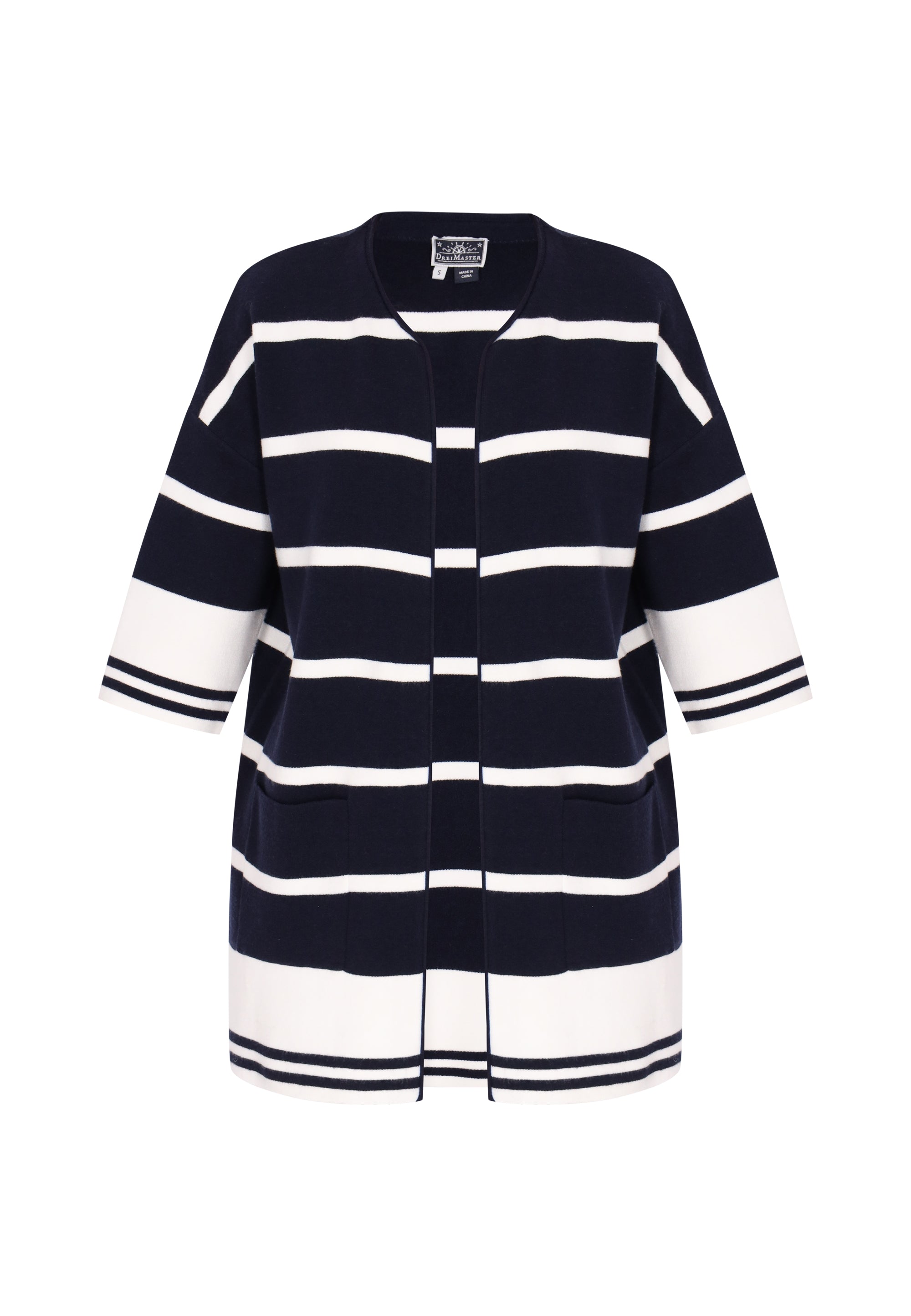 Enrich your closet with this loose-fitting open-front cardigan from Maritime's Collection. This classic model features half sleeves and dropped shoulders for a casual yet stylish look. Made of knit fabric with an eye-catching striped pattern, it also features functional pockets for added convenience. It is ideal for everyday styling.