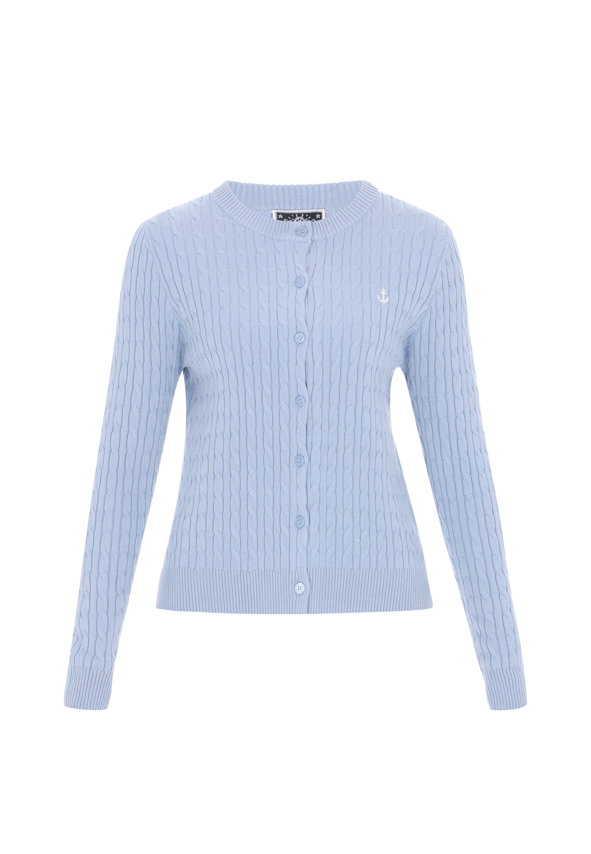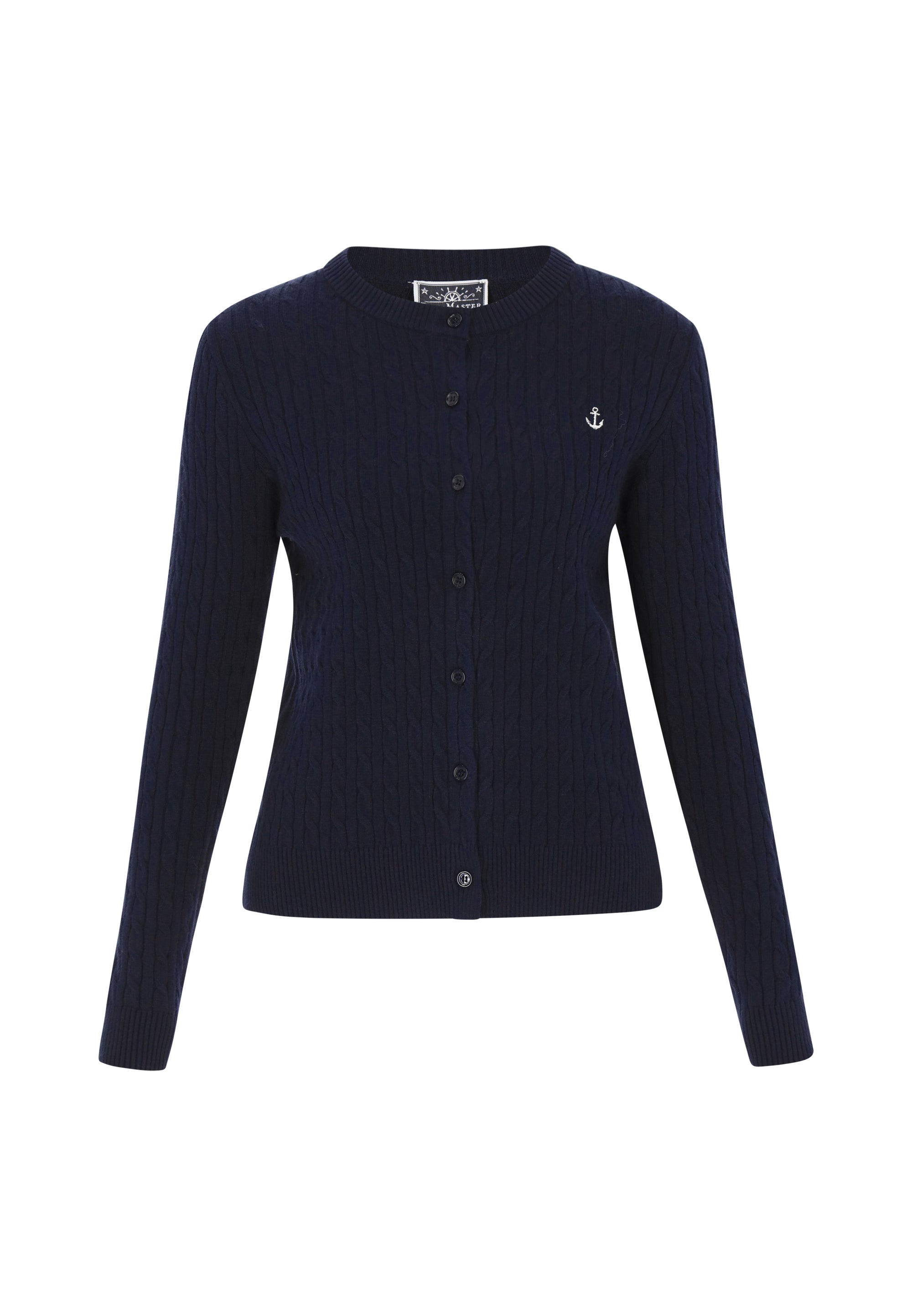 Cozy up with this classic cardigan from our Maritime-Kollektion. Designed in a regular fit with a timeless round neck and long sleeves, it features a button-up front for easy layering. Made from soft knitted fabric with a textured cable pattern and subtle embroidery, this cardigan blends casual comfort with stylish, everyday fashion. A versatile item that adds a touch of maritime charm to any wardrobe.