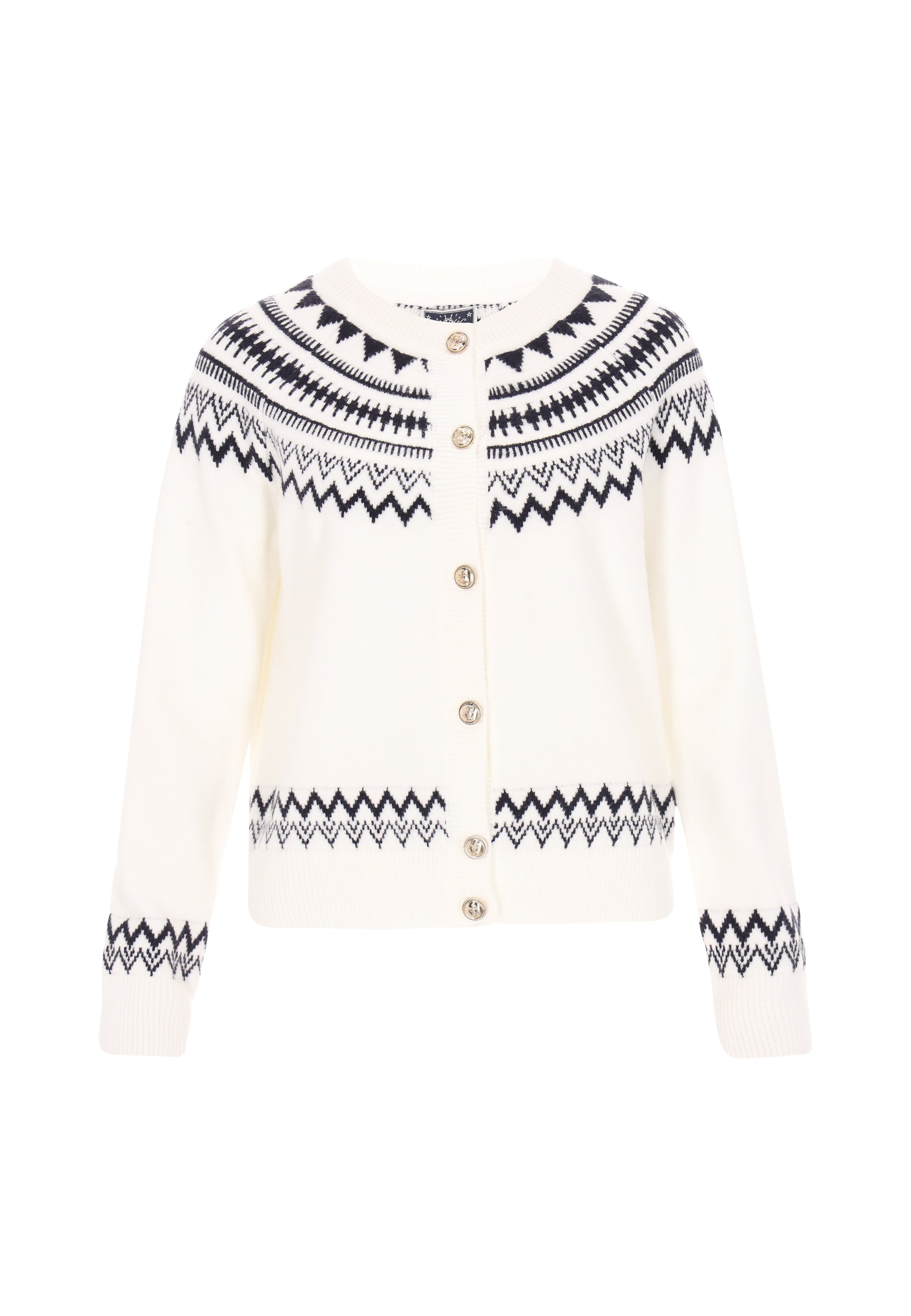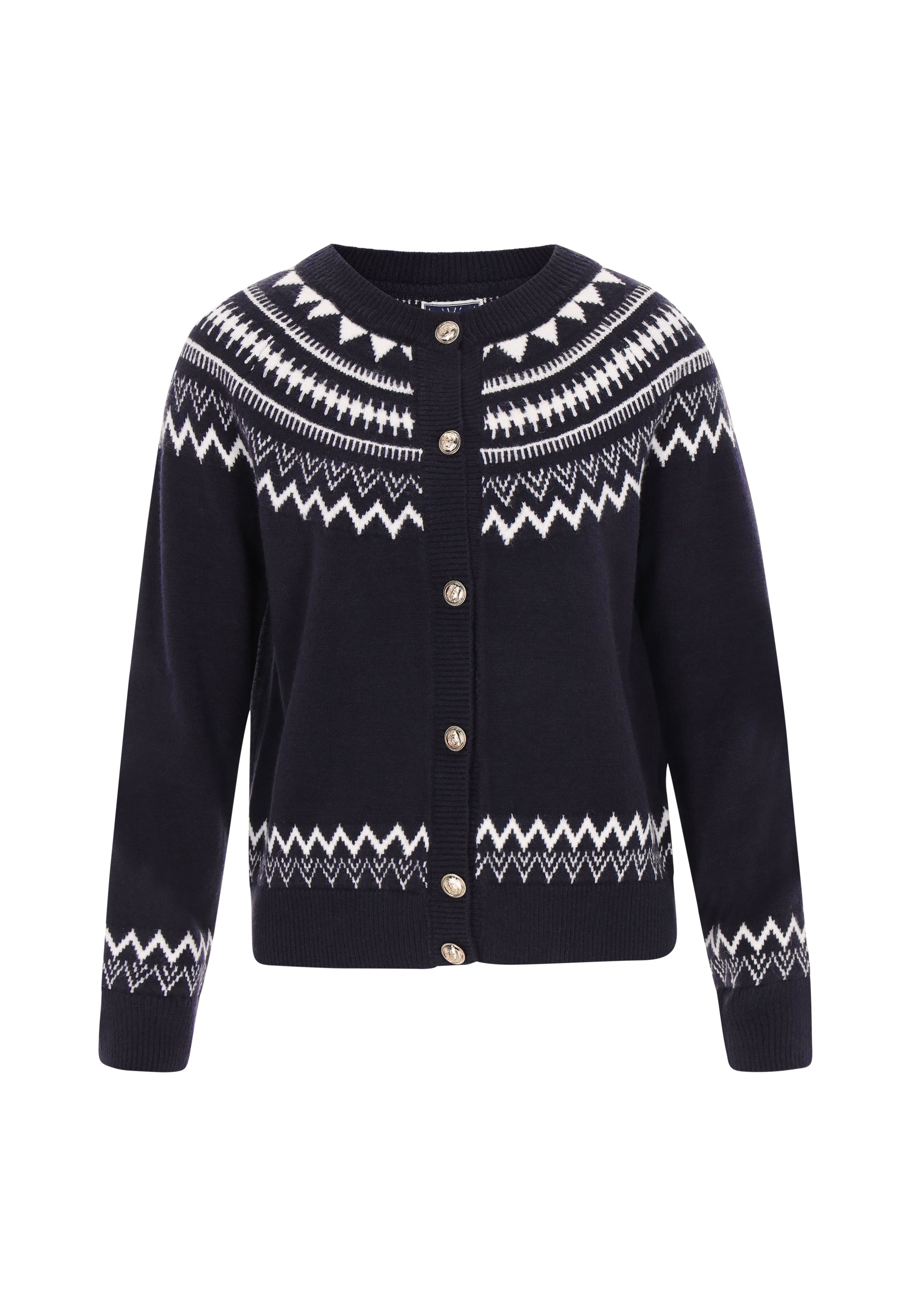 A classic cardigan from the Maritime Collection, perfect for colder days. Made from soft, knitted fabric and decorated with a traditional Norwegian pattern, which gives it a warm, winter character. The model with long sleeves, a round neckline and button closure combines comfort and timeless style. A great choice for everyday use - both for casual styling and more classic sets.