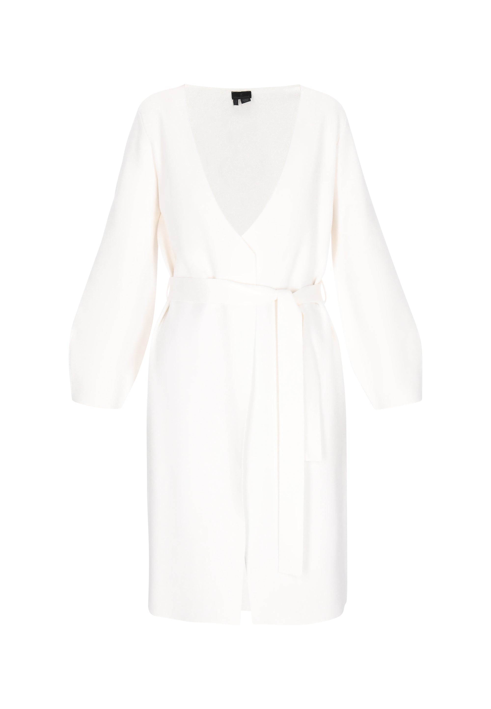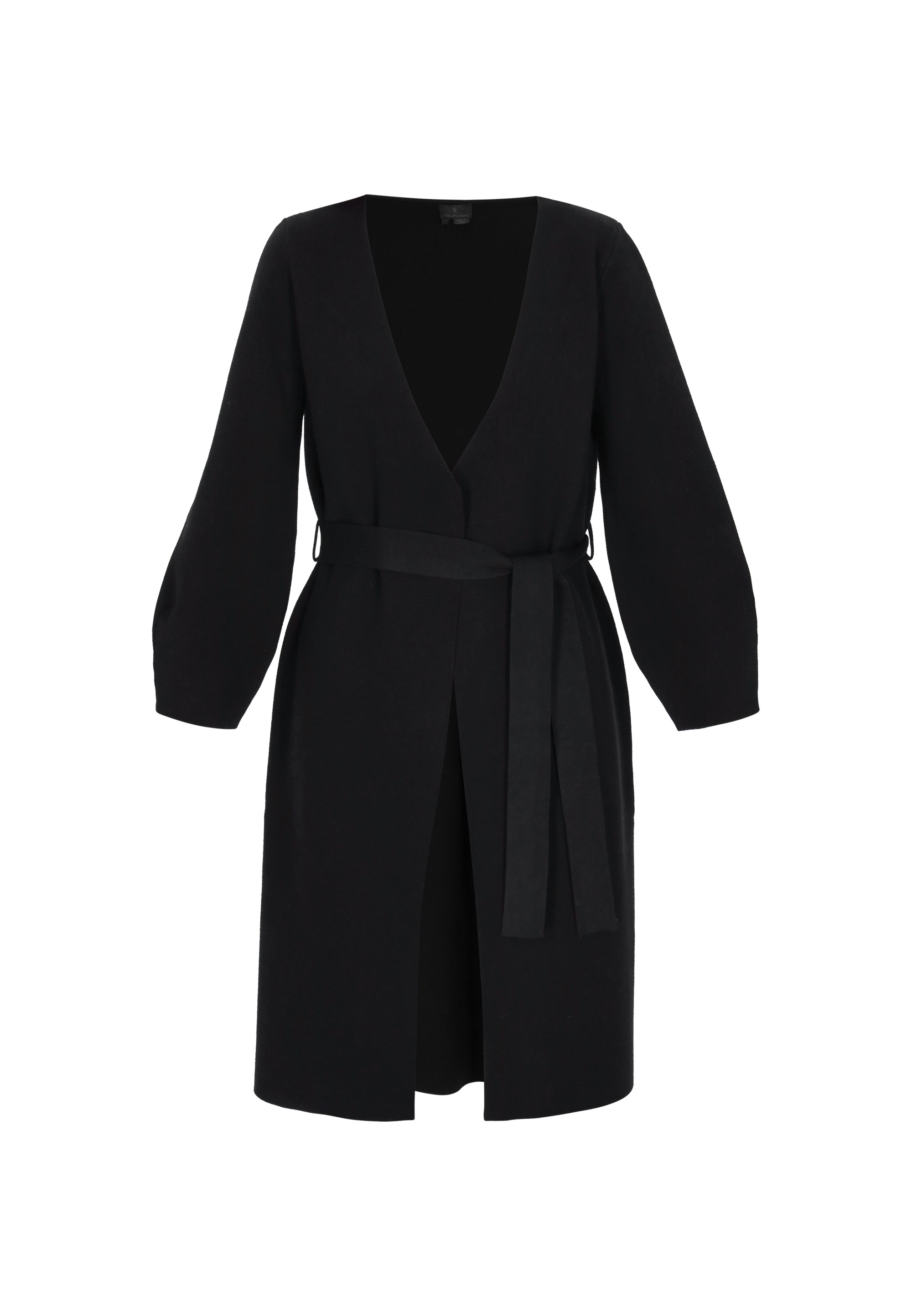 Wrap yourself in timeless elegance with this long knitted cardigan from the Classic Collection. Featuring a regular fit, V-neck, and long bishop sleeves, it offers a sophisticated yet casual look. The wrap design with a belt enhances the silhouette while the plain pattern keeps it classic and versatile. Made for comfort and style, this item is perfect for layering and everyday wear.