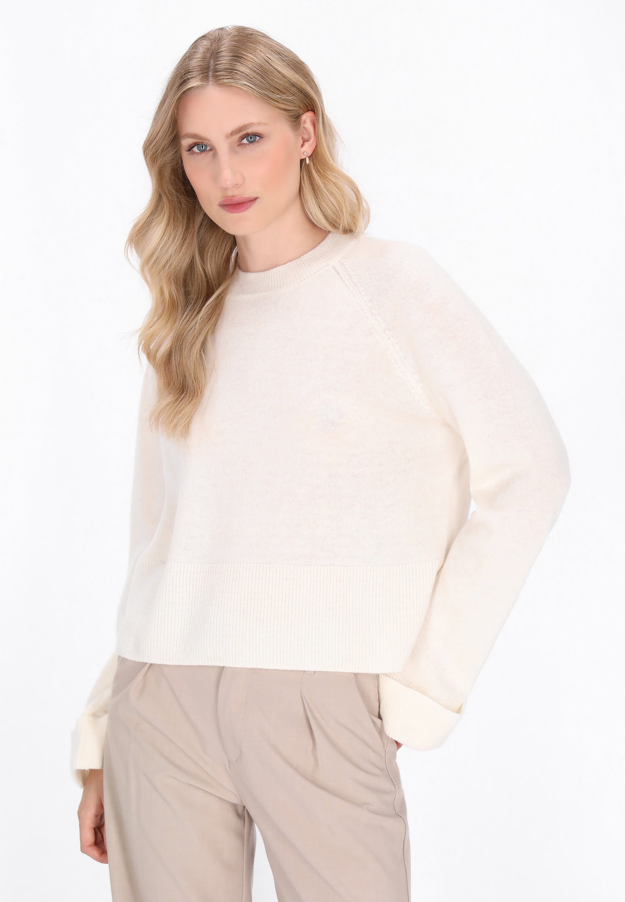 Enjoy effortless comfort and classic style with this relaxed-fit sweater from the Classic Collection. Designed with a round neck and long raglan sleeves featuring a rolled-up detail, it offers a laid-back yet polished look. Made from soft knitted fabric in a plain pattern, it combines timeless appeal with everyday wearability. Perfect for casual outings or cozy moments, this sweater is a versatile wardrobe staple that blends comfort with understated elegance.