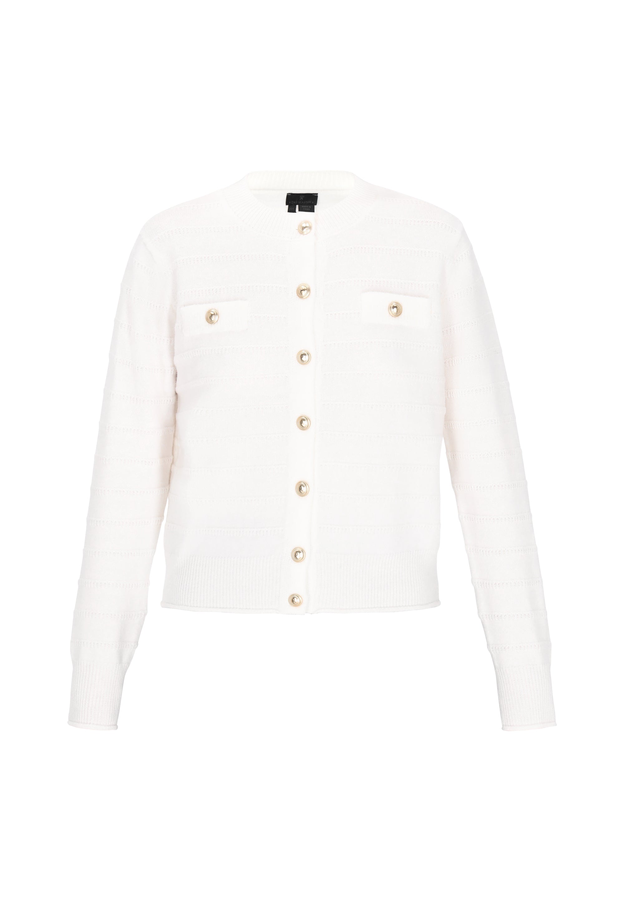 Elevate your casual wardrobe with this regular-fit cardigan from the Classic Collection. Featuring a round neck and long sleeves, it is made from soft knitted fabric with a textured pattern that adds subtle depth. The button-up front is enhanced with decorative buttons, while practical chest pockets offer both style and function. Combining timeless design with comfortable wear, this cardigan is a versatile item that effortlessly complements any classic look.